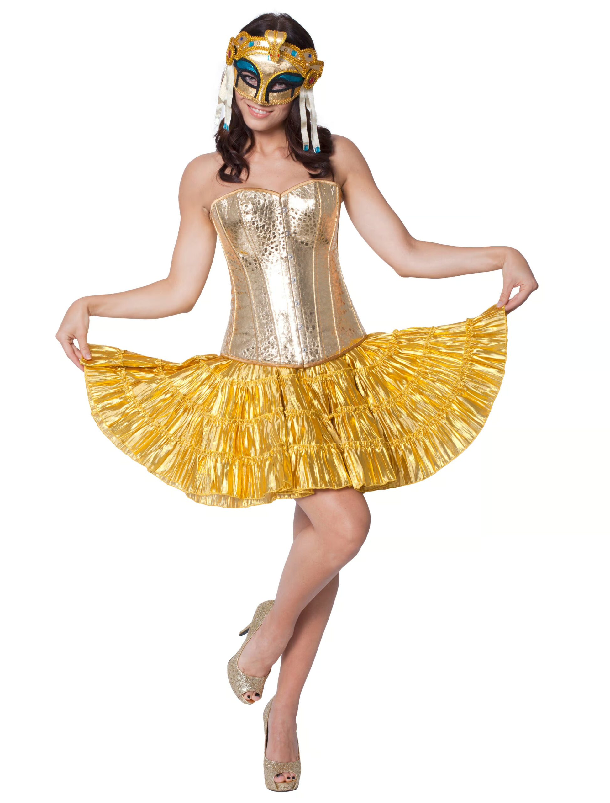 Goldmarie, Cleopatra oder Venezianische Schönheit? Sei wer Du willst! Mit dieser goldenen Corsage, die Dich zum absoluten Hingucker der Karnevalsparty macht! Nicht nur die Jecken werden begeistert sein von Deinem hinreißenden Auftritt! Die Herzen werden Dir zu Füßen liegen! Damit wird Dein Karneval unvergesslich!