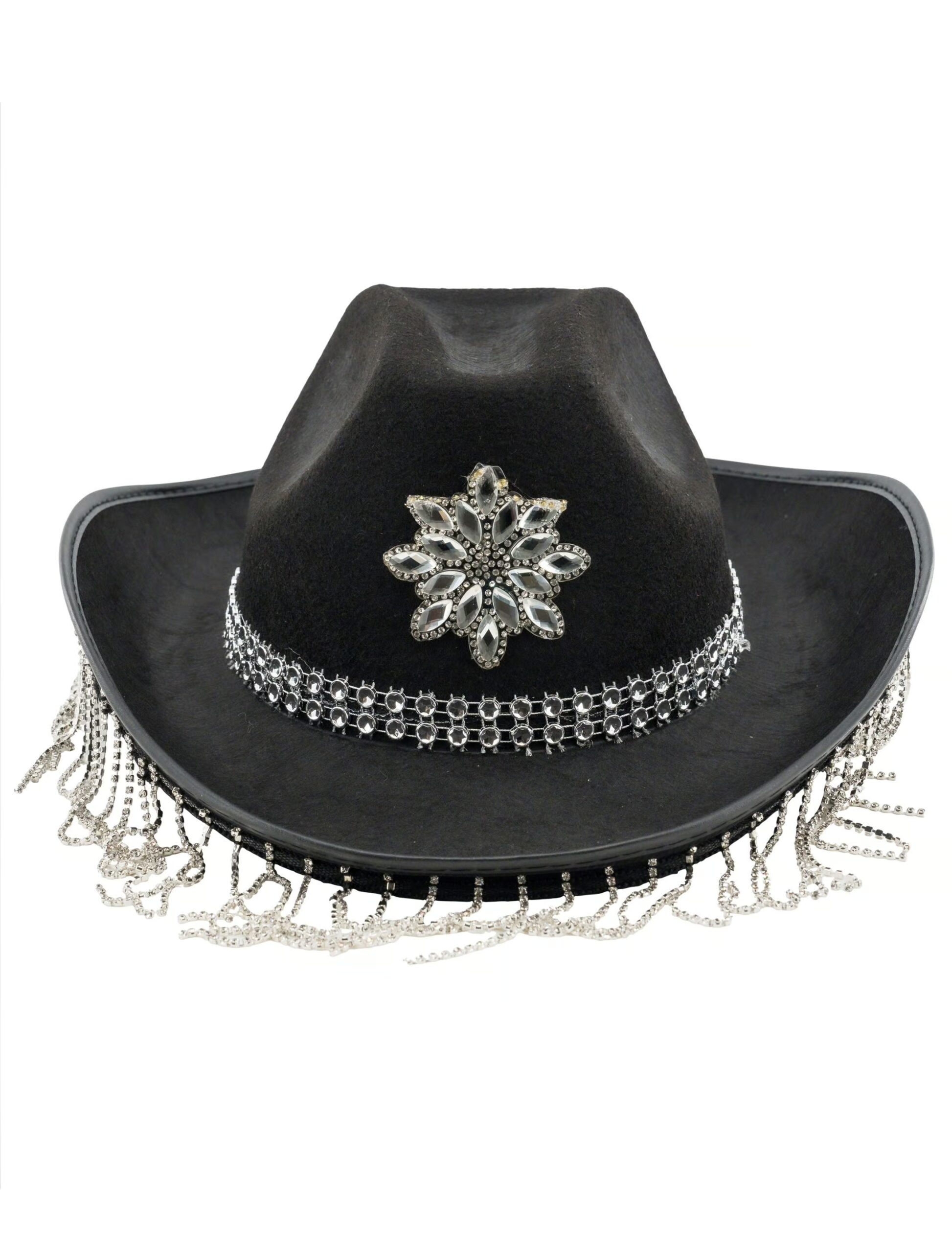 Cowboyhut mit Strassketten schwarz one size, ideal für Karneval & Fasching