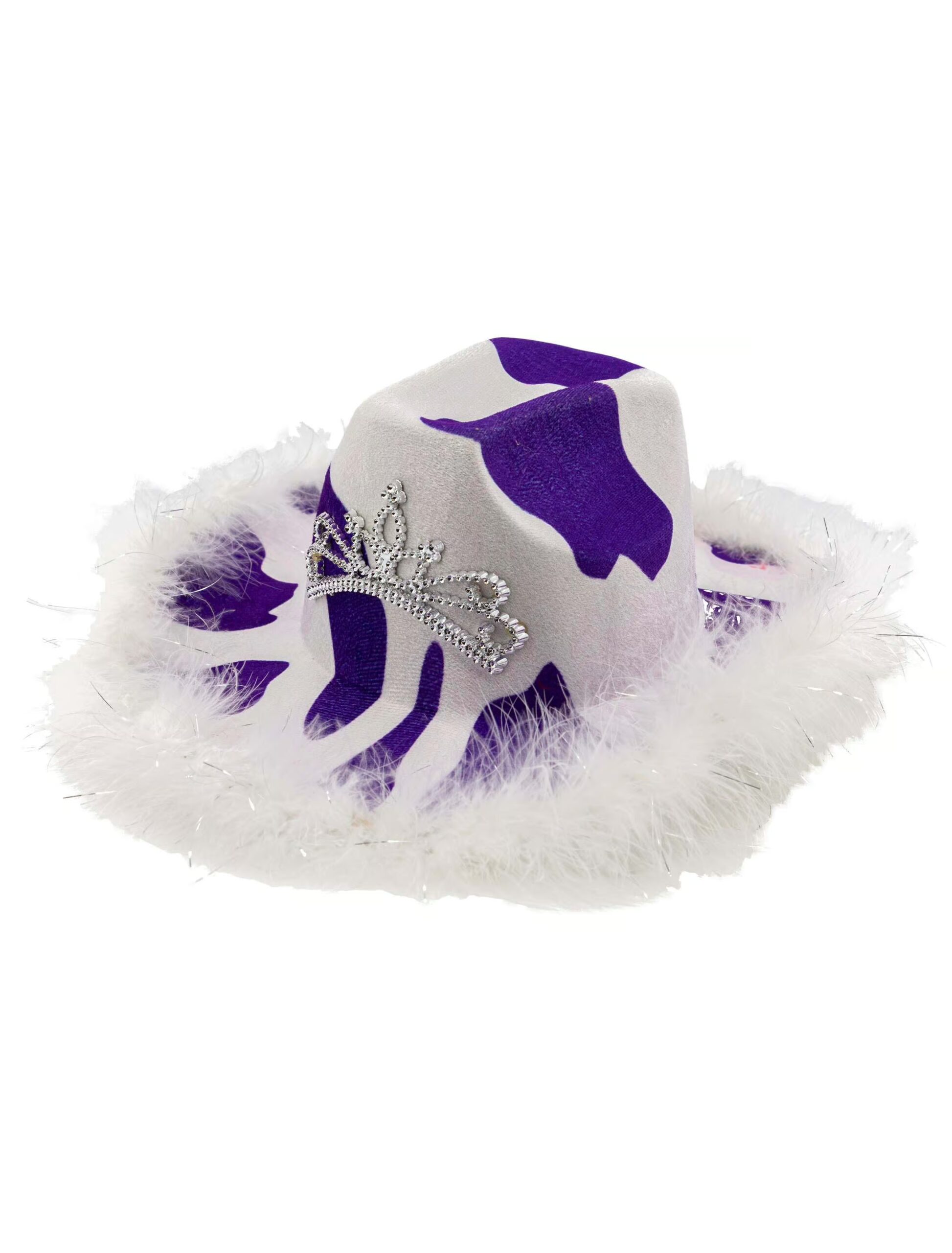 Kostümzubehör Cowgirlhut lila/weiß Kuhmuster one size