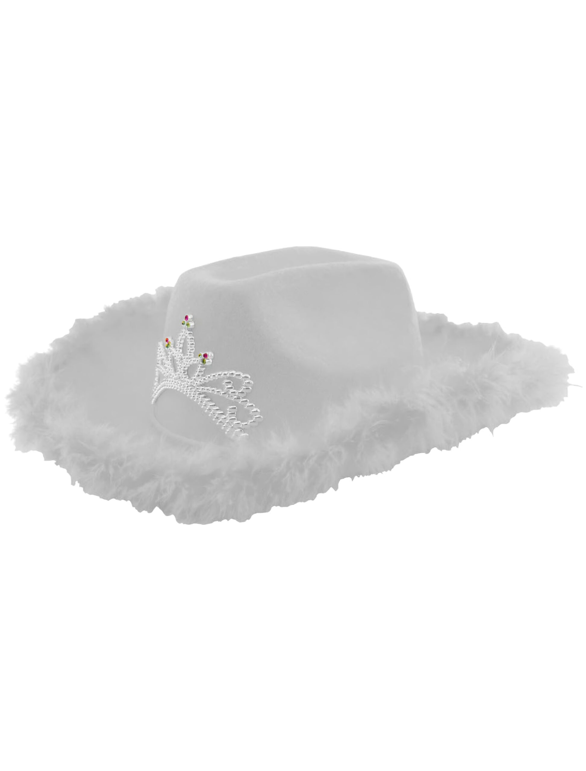 Unser Cowgirlhut ist der royale Ritterschlag für jeden, der dachte, Cowboyhüte wären nur was für staubige Saloons. Falsch gedacht! Mit seinem strassbesetzten Diadem und dem flauschigen Marabu-Rand bringst du Stil, Glanz und ein bisschen Drama in den Wilden Westen. Ob Line Dance oder Laufsteg – dieser Hut macht klar: Du bist nicht nur ein Cowgirl, du bist die Königin der Prärie. Der elegante Strass funkelt heller als jeder Lagerfeuerfunke, und der flauschige Marabu-Ring sorgt für die perfekte Mischung aus Wild und Wundervoll. Mit diesem Hut bist du immer der Mittelpunkt: auf Mottopartys, Festivals oder bei jeder Gelegenheit, die ein bisschen mehr Glamour verdient. Zeig allen, dass der Wilde Westen noch nie so schick war. Dein Motto ab jetzt? Yeehaw – aber make it fabulous! Royaler Glitzergruß aus der Prärie!