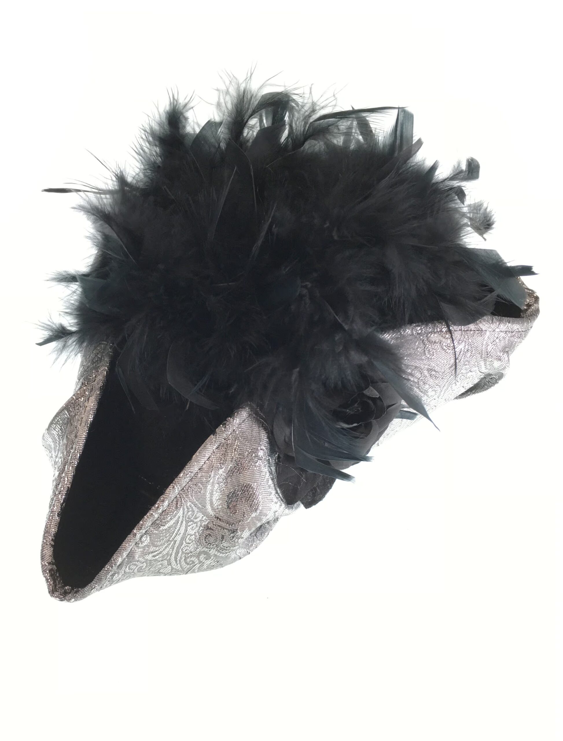 Wir haben da etwas für Dich, um Dein Halloween-Outfit authentischer wirken zu lassen. Dieser silberne Dreispitz mit einer schwarzen Rose an der Seite darf hier nicht fehlen. Der Dreispitz entspricht einem Kopfumfang von ca. 56 cm. Er besteht aus 100% Polyester und ist mit schwarzen Federn geschmückt. Die ideale Kopfbedeckung zu Halloween.