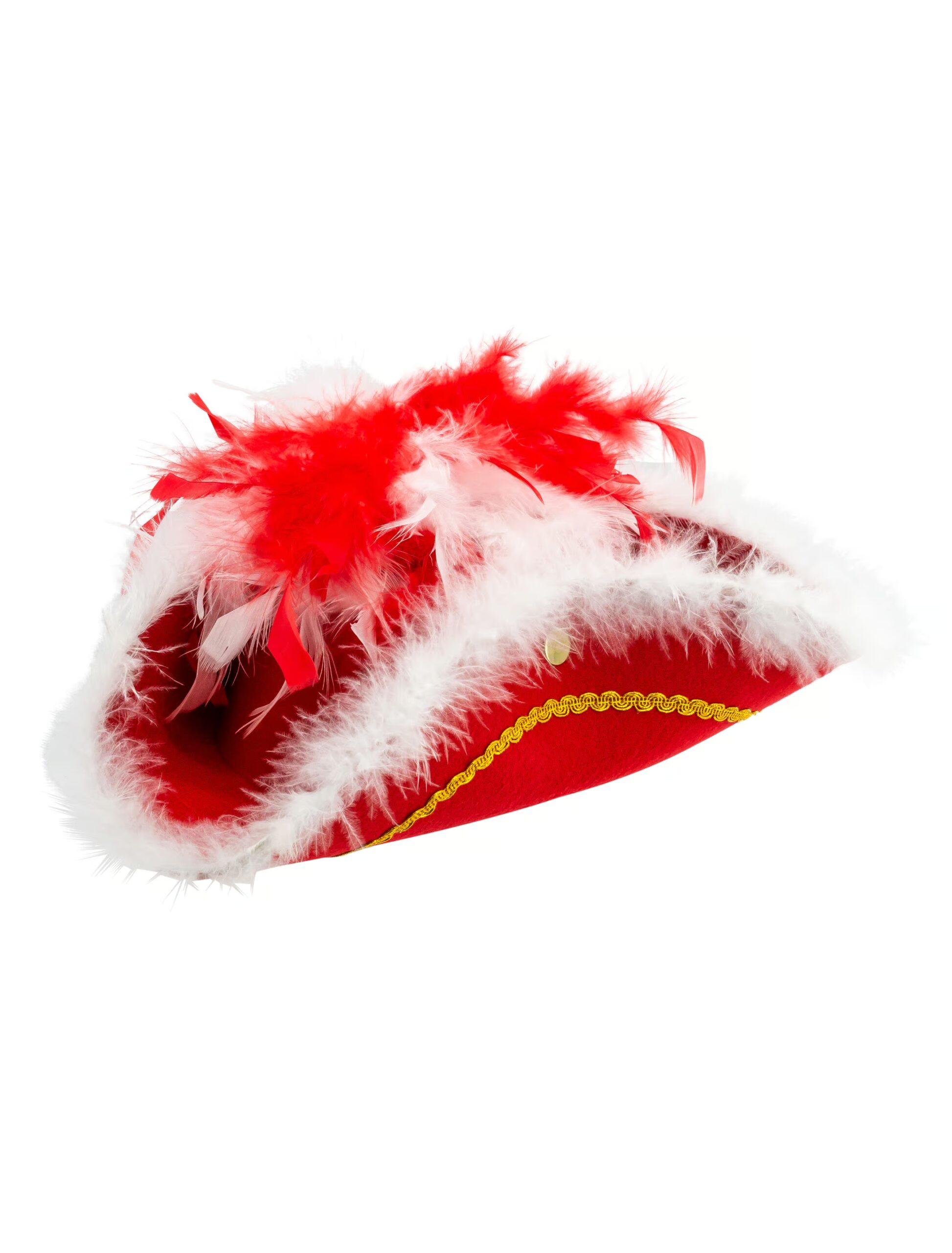 Dieser rot-weiße Dreispitz ist aufgrund seiner Farben besonders für den Kölner Karneval geeignet. Der hübsche Hut für Damen und Herren ist mit einer goldenen Borte geschmückt und wird von vielen roten und weißen Federn geziert, die einem Vogelnest gleichen. Ein Accessoire, das jedes Kostüm in einen tollen Hingucker verwandelt!