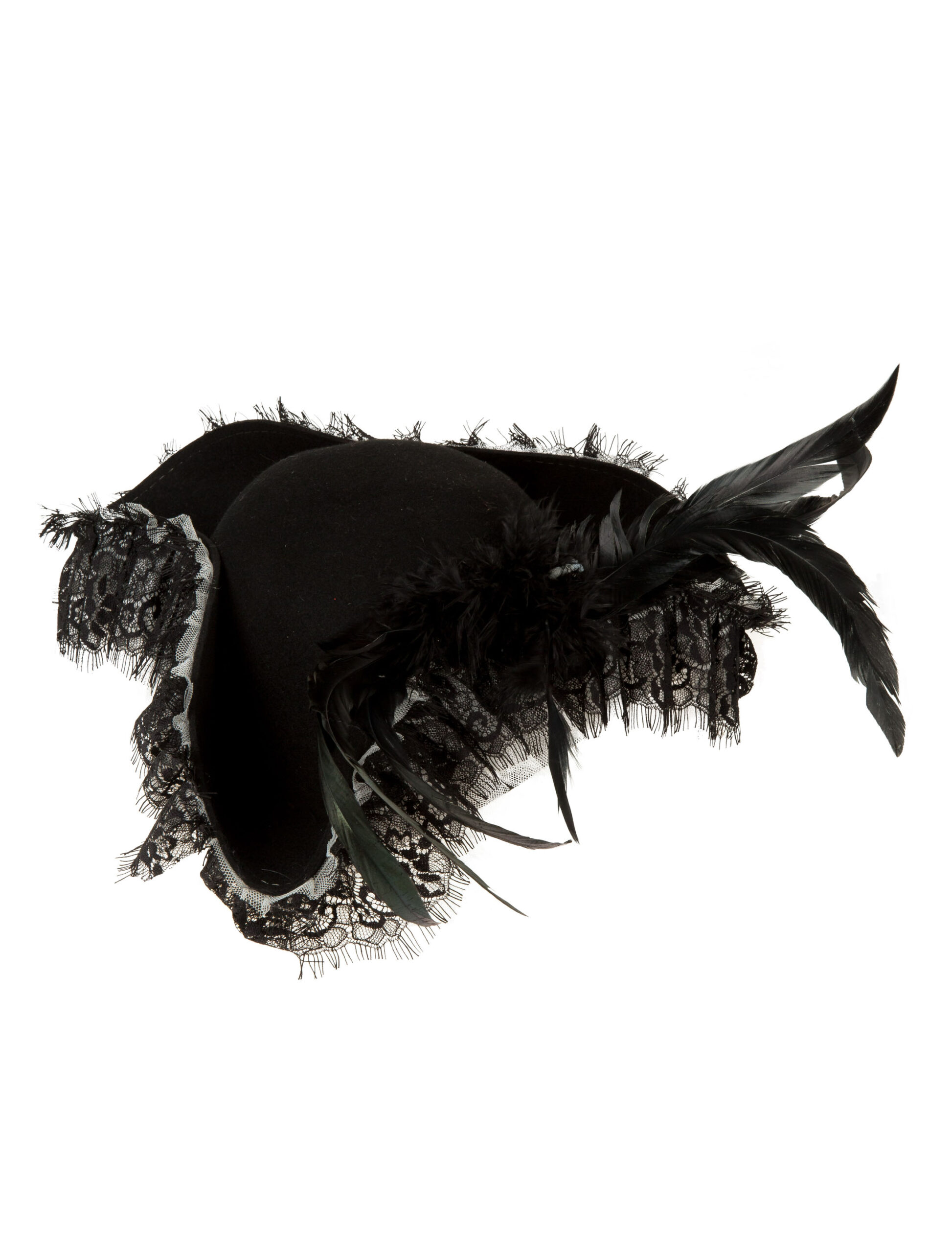 Kostümzubehör Dreispitz Wollfilz mit Rüschen schwarz 59
