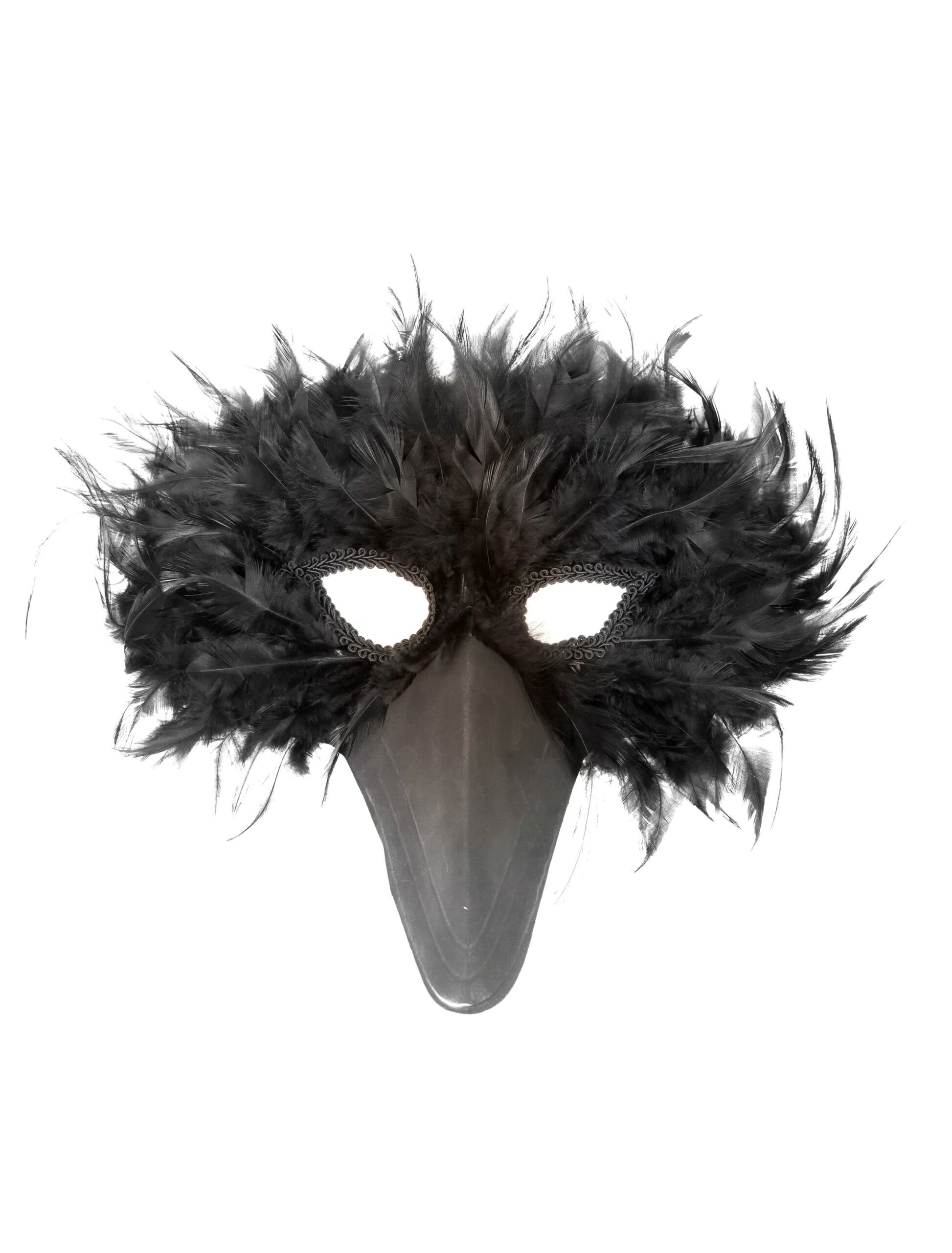 Mit dieser düsteren Halbmaske verwandelst Du Dich in Sekundenschnelle in ein ganz besonderes Wesen. Die Federmaske ist mit zahllosen, schwarzen Federn bestückt und erinnert mit ihrem Schnabel stark an einen Vogel. Wunderbar für Halloween, Karneval oder die nächste Mottoparty!