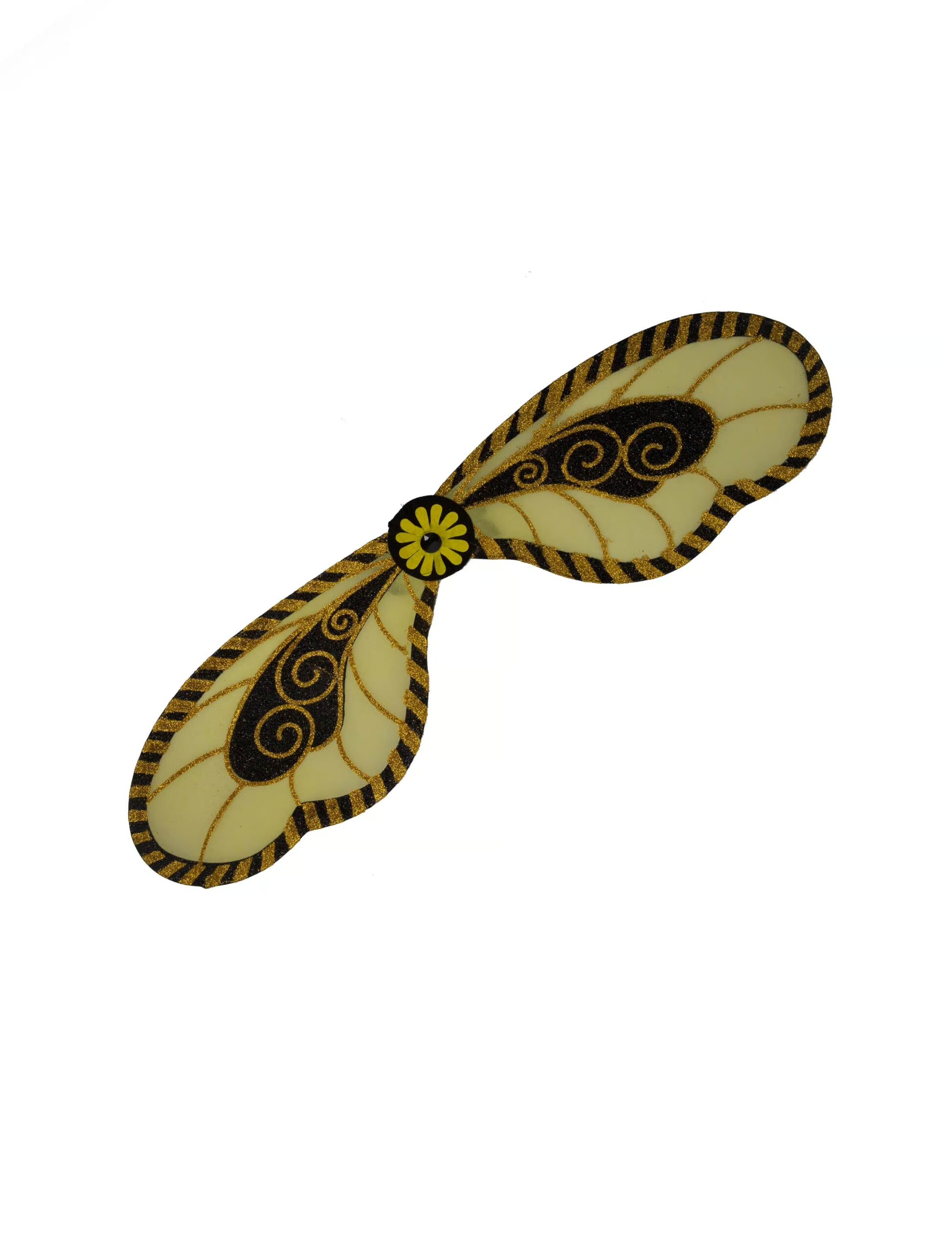 Diese prachtvollen Flügel sind genau die richtige Ergänzung für Dein Bienen-Kostüm! Die schwarz-gelben Flügel haben eine Spannweite von etwa einem Meter und sind mit einem herrlichen Muster samt gelber Blüte verziert. Auch für alle Feen- und Schmetterling-Outfits ein echtes Highlight!