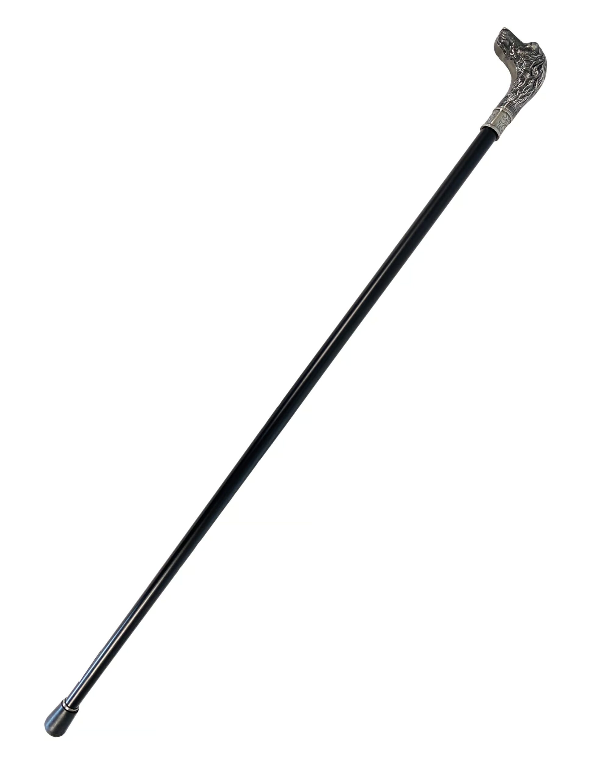Dieser Gehstock, der mit einem silbernen Hundekopf versehen ist, eignet sich perfekt als Utensil für Dein Kostüm zu Fasching oder zum Karneval. Der schwarze Gehstock hat eine Länge von 93 cm und besteht zu Hälfte aus einer Legierung und zur anderen Hälfte aus Eisen. Der preiswerte Gehstock sieht edel aus und ist perfekt für Deine Verkleidung.