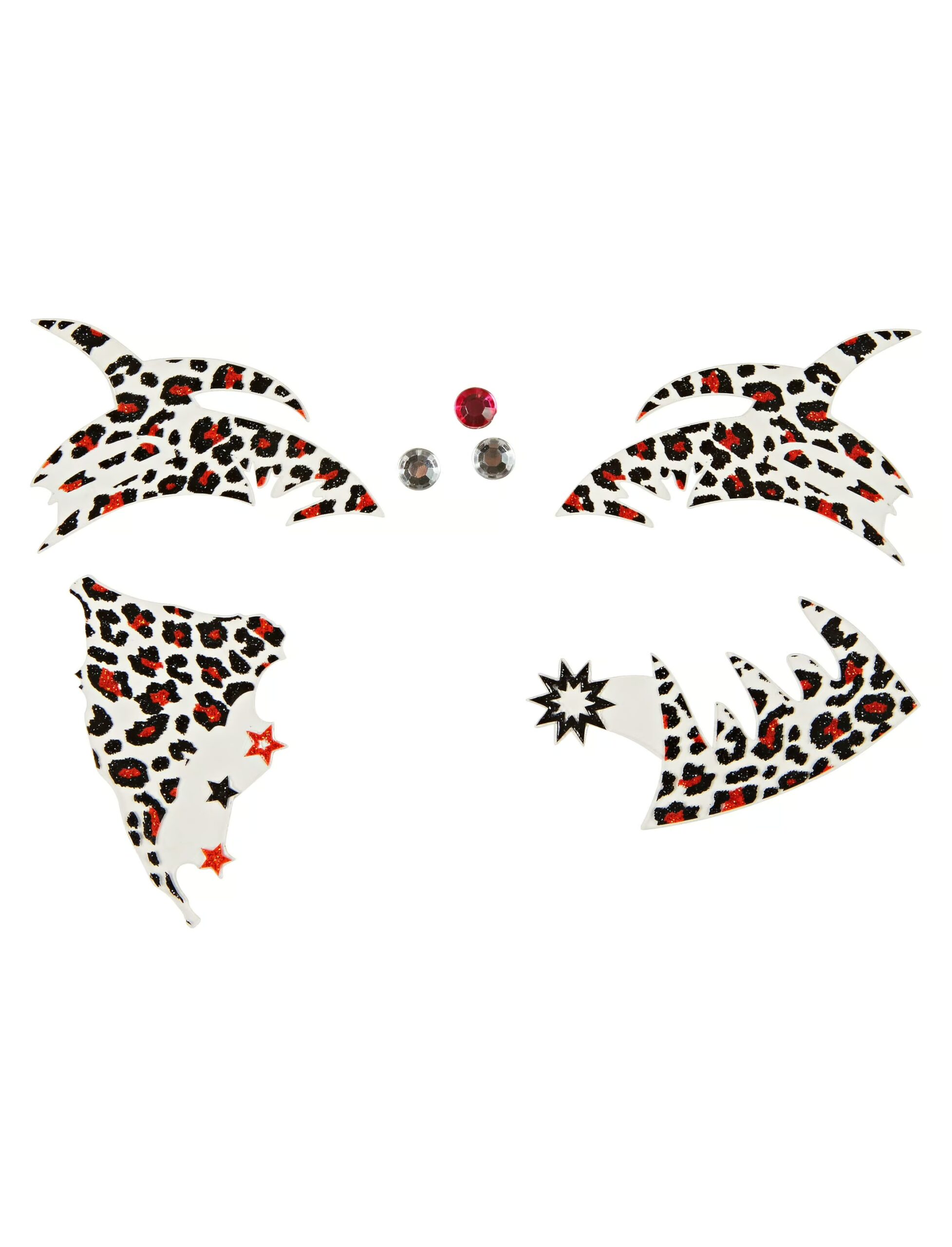 Vorsicht wild! Als echtes Raubtier brauchst Du natürlich auch die richtige Gesichtsschminke. Aber schminken ist Dir zu mühsam? Dann kannst Du zu diesem Gesichtstattoo im Leoparden-Muster greifen. Schnell und einfach anzubringen, mit vielen Applikationen (Sternchen & Strass-Steinchen) verziert und 100% wild!