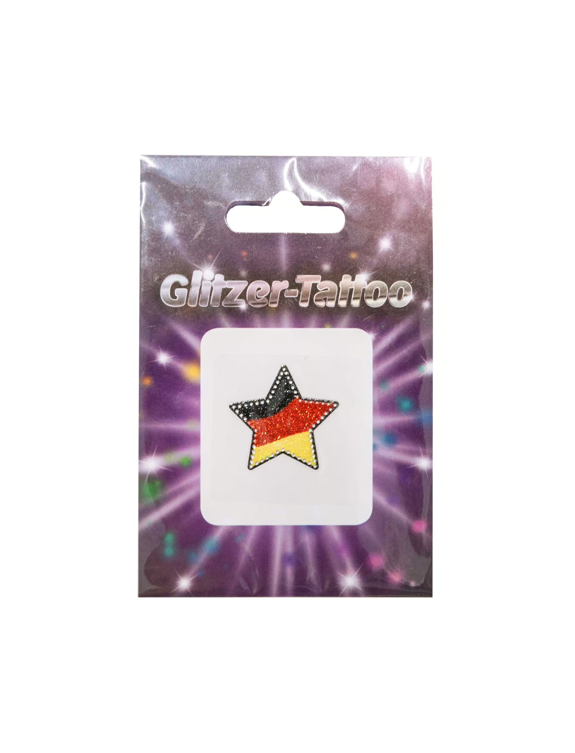 Es wird höchste Zeit DIE MANNSCHAFT zu unterstützen, egal ob bei der nächsten WM oder EM! Mit unserem glitzernden Strass Stern Tattoo in Deutschlandfarben zeigst Du, dass Dir Schwarz-Rot-Gold unter die Haut geht. Und das Beste: Unsere Tattoos gehen nach dem Fußball-Fest auch mühelos wieder ab!