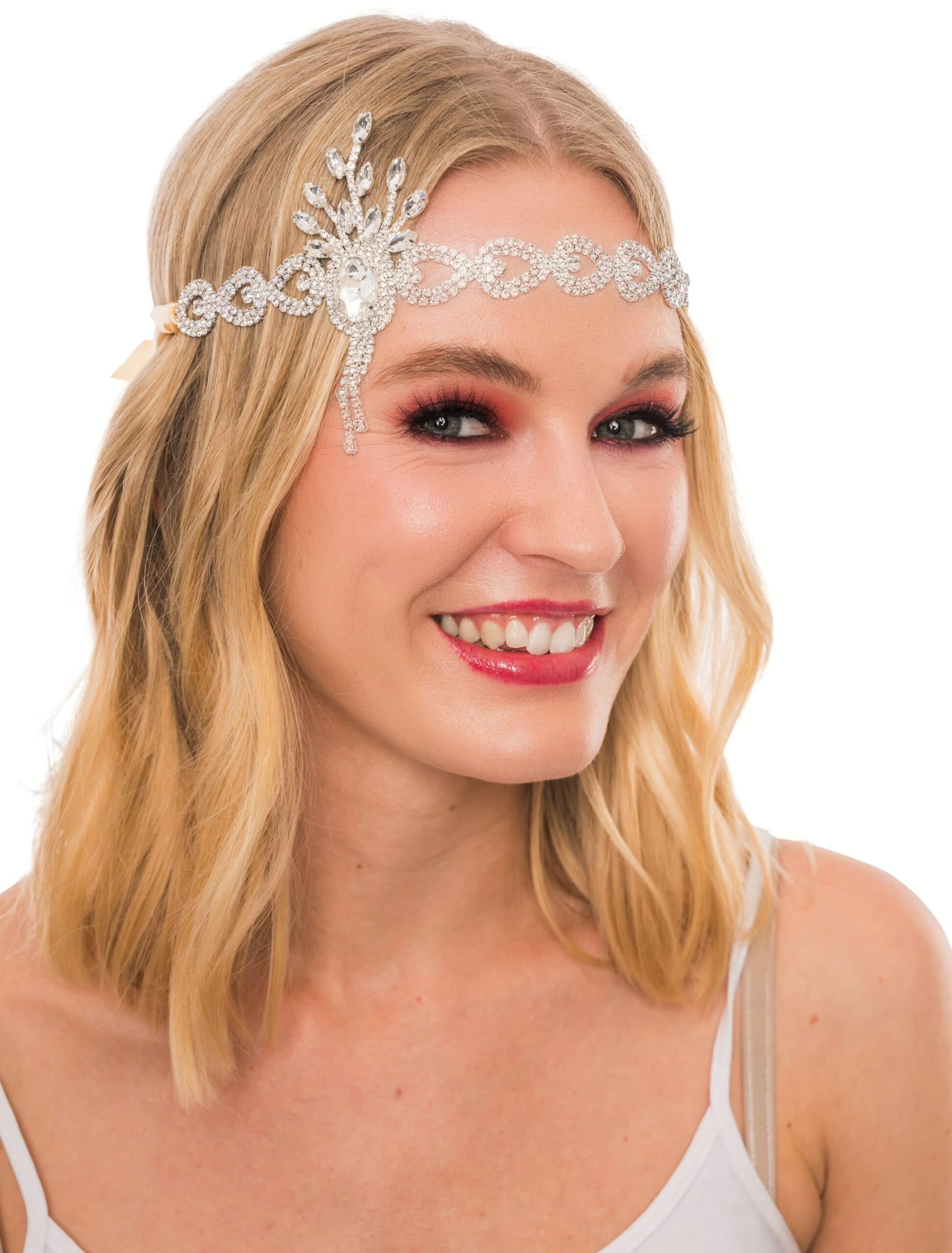 Haarband mit Kristallen silber, ideal für Karneval & Fasching