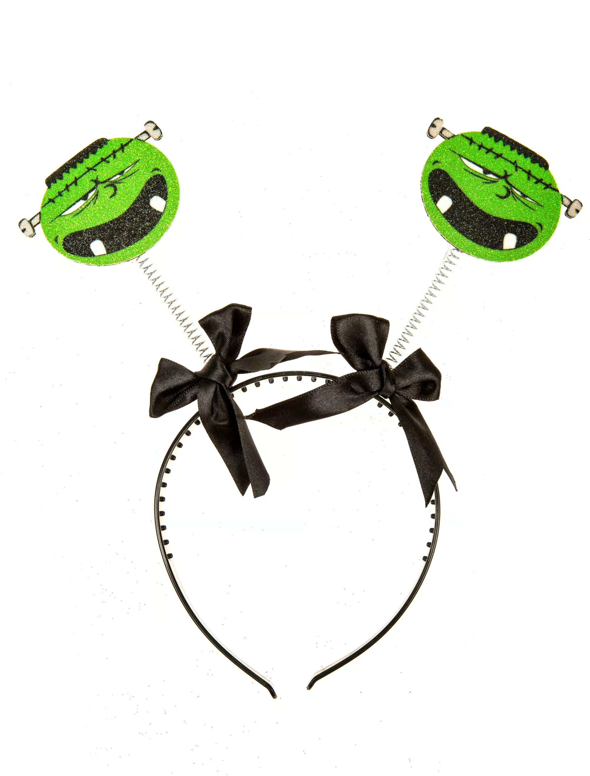 Du bist zu einer Halloweenparty eingeladen und suchst noch den letzten Schliff für Deine schaurige Verkleidung? Gar kein Problem! Unser Haarreif Frankstein mit süßen, schwarzen Schleifen darf hier nicht fehlen. Die Bommel haben eine Länge von ca. 12,5 cm. Dieses schaurige Accessoire passt perfekt zu Deinem Halloween Kostüm. Das Produkt beinhaltet nur einen Haarreif.