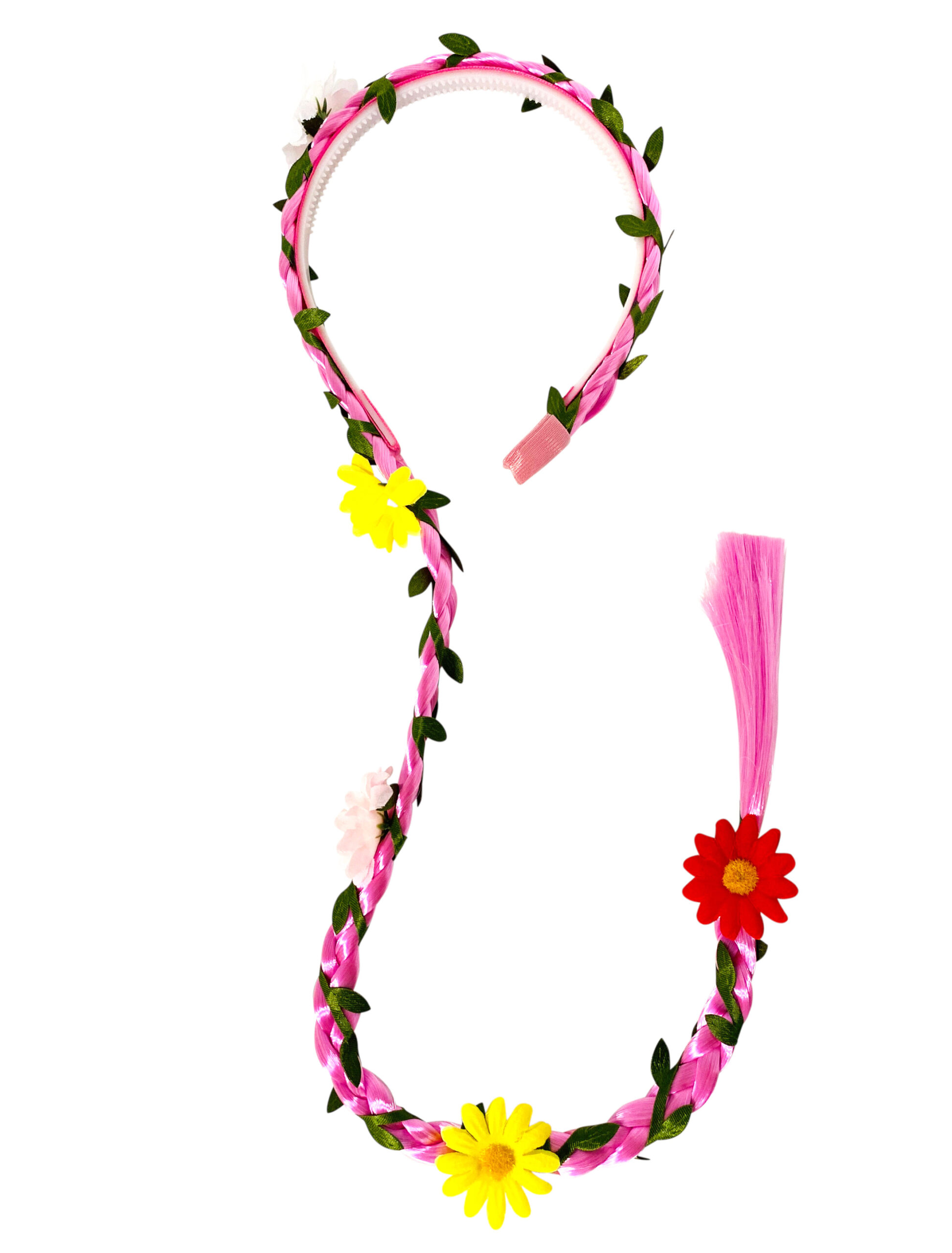 Unser bezaubernder, geflochtener, pinker Haarreif mit Zopf und Blumen ist nicht nur ein bezaubernder Hingucker, sondern auch ein attraktives Accessoire, das Du mit den verschiedensten Kostümteilen aus unserem Shop geschickt kombinieren kannst. Das Besondere an diesem Haarreifen ist der lange geflochtene Zopf mit seinen eingeflochtenen Blütenranken, der elegant über Deine Schulter und den Rücken fällt. Ein apartes Requisit für RapunzelKostüme oder Blumenmädchen, das zum Fasching und Karneval bewundernde Blicke einbringt.