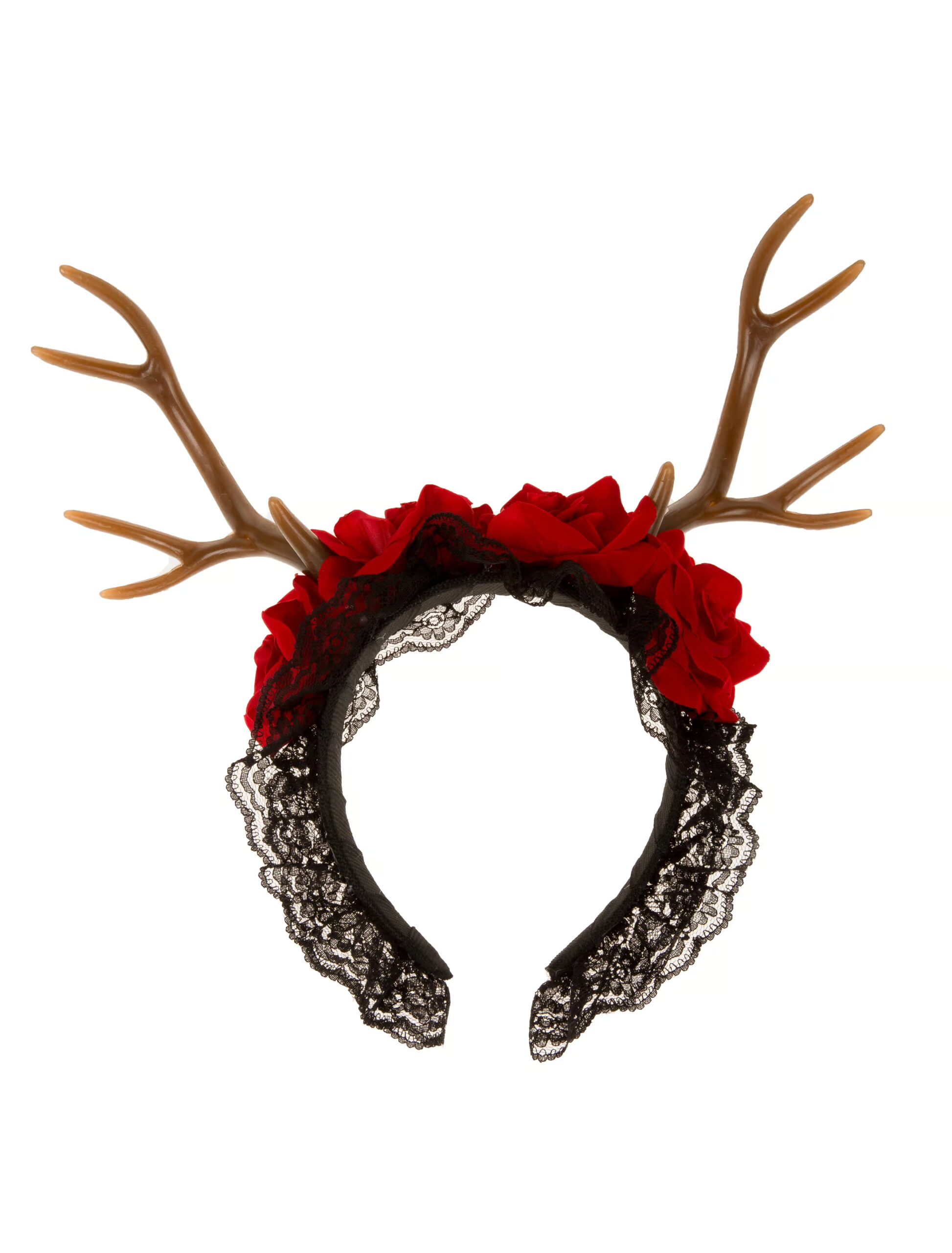 Du bist auf der Suche nach einem passenden Accessoire für Dein Karnevalsoutfit? Unser Haarreif Geweih mit Blumen in Rot und schwarzer Spitze darf hier nicht fehlen. Das Geweih hat eine Länge von 14 cm und eine Breite von 5 cm. Dieses schöne Accessoire passt wunderbar zu Deinem Kostüm an Karneval und Fasching. Das Produkt beinhaltet nur einen Haarreif.