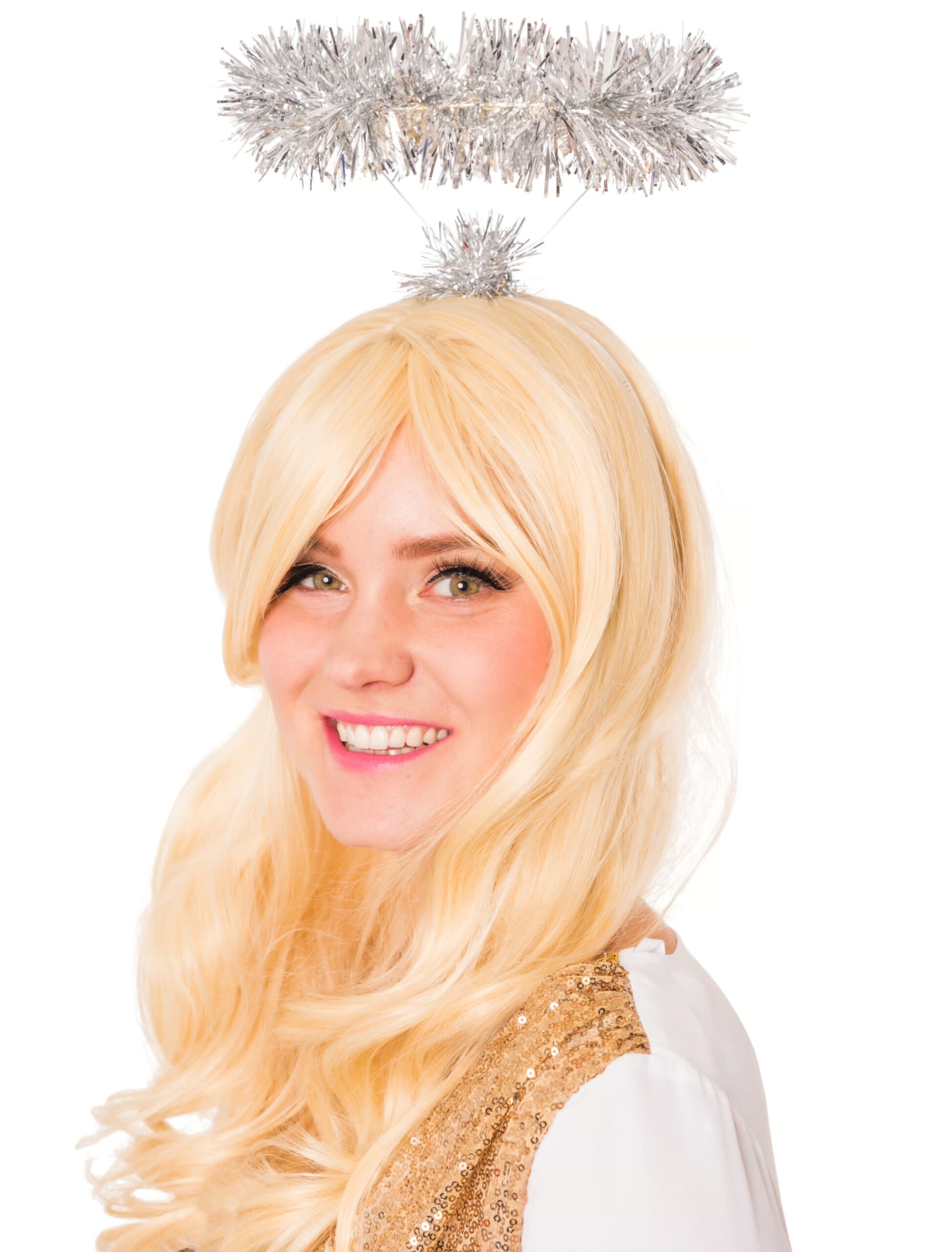 Ein unverzichtbares KostümZubehör für charmante Engel, geFlügelte Himmelsboten und andere Heiligenfiguren ist dieser mit LED ausgestattete und mit silbernem Lametta geschmückte Haarreif Heiligenschein, den Du nicht nur zu Deinen bezaubernden EngelKostümen im Karneval, Fasching und auf Mottopartys tragen kannst, sondern, der auch ein himmlisches Accessoire für freudebringende Weihnachtsengel und sogar das Christkind ist.