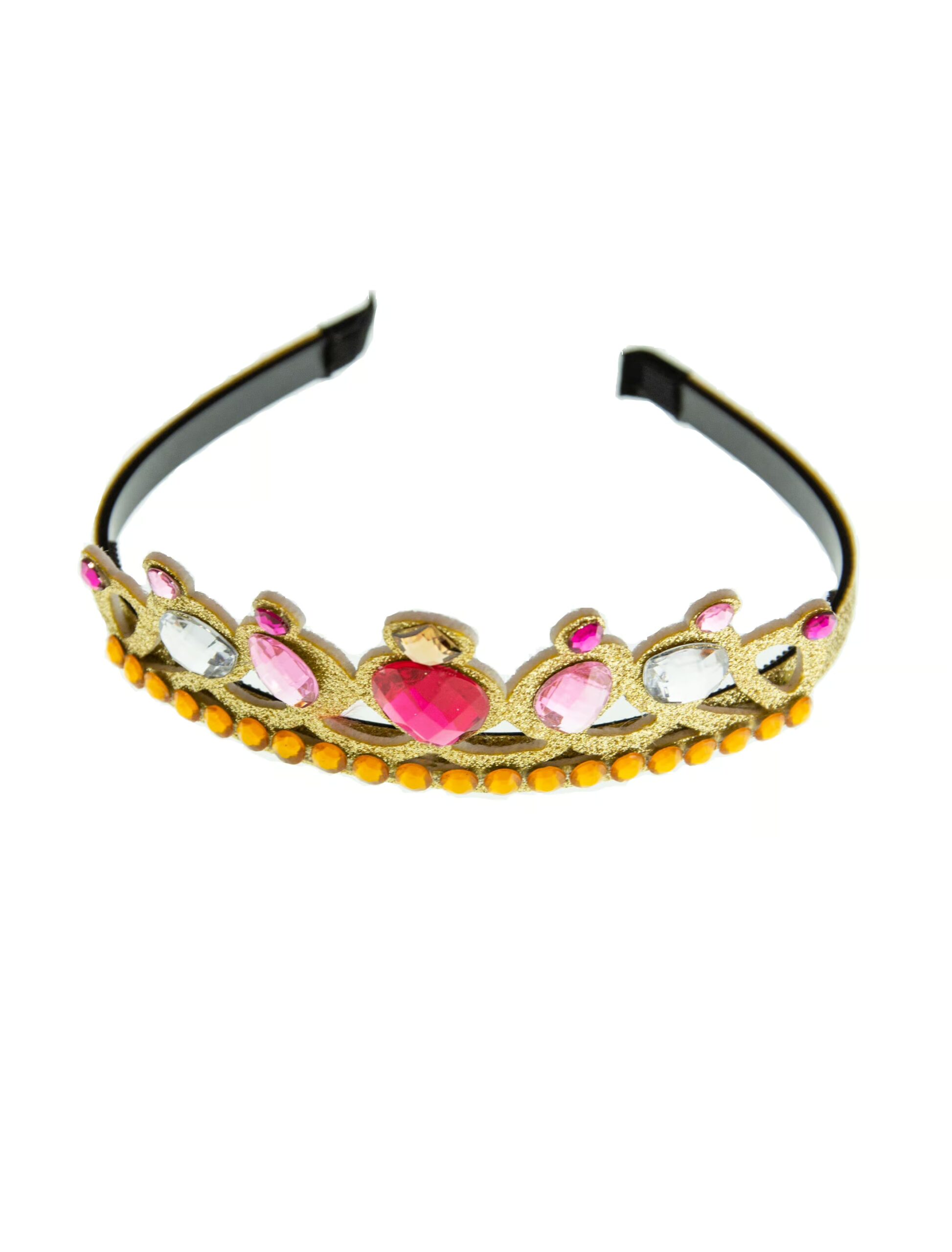 Erst ein standesgemäßer Haarreif macht Dich zu einer echten Prinzessin! Dieses hübsche Schmuckstück mit den pinken, rosafarbenen und weißen Kristall-Steinen wird rundum von goldfarbenem Glitzer und mit weiteren goldenen Strass-Steinchen geziert. Die edle Krone lässt sich bequem als Haarreif tragen und sieht wunderbar zu langen Prinzessinnen-Kleidern aus.