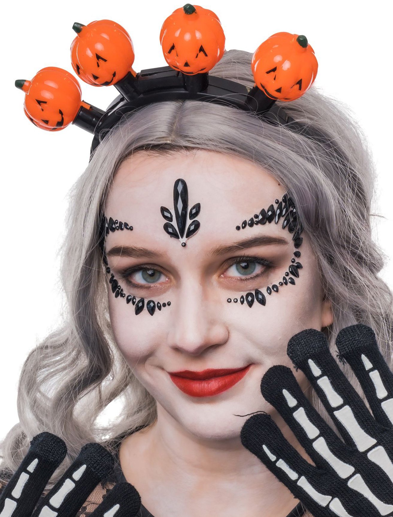 Kostümzubehör Haarreif LED 4 Kürbisse schwarz/orange