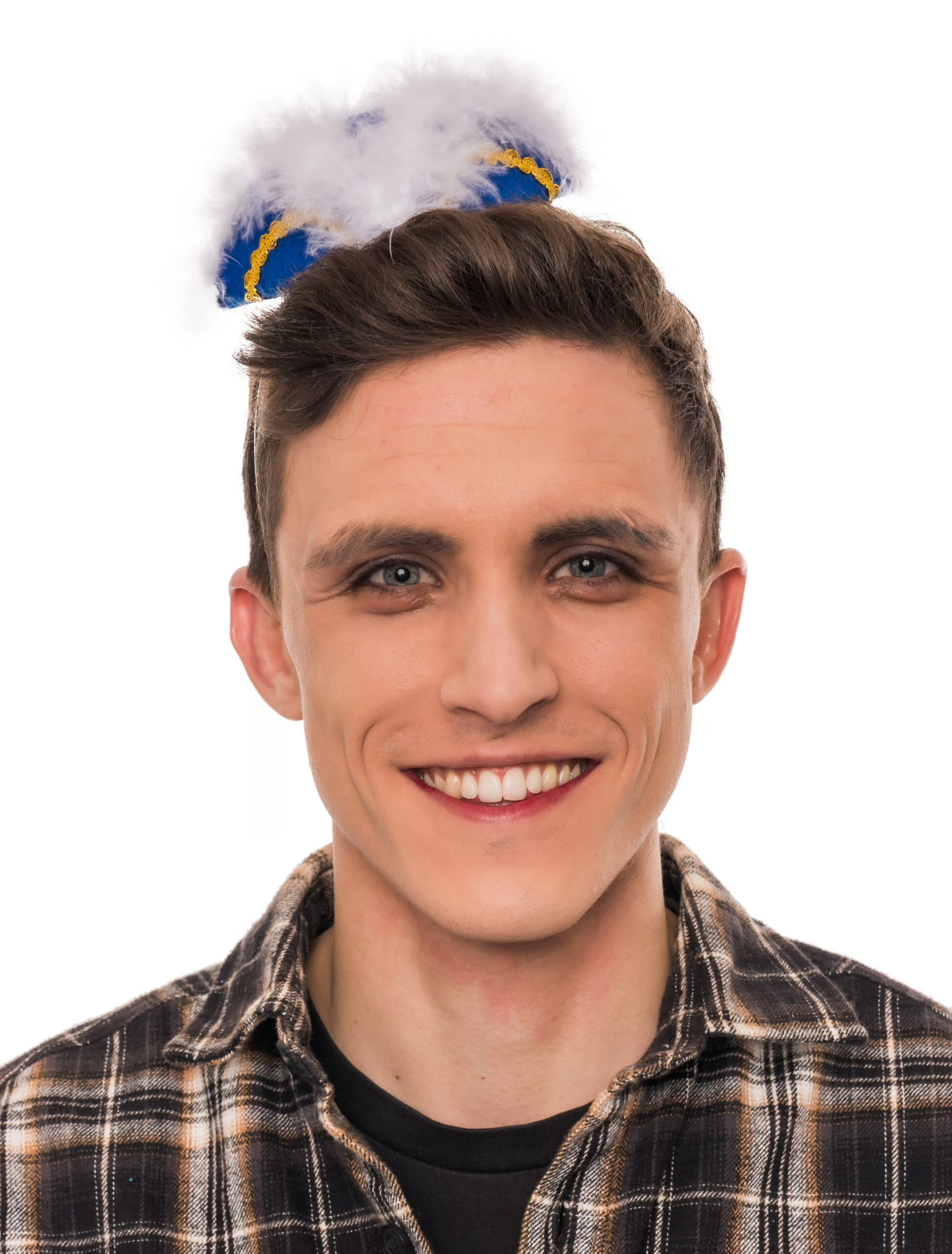 Der Haarreif Mini Dreispitz blau/weiß ist ein echter Hingucker auf jeder Karnevalsparty. Du kannst ihn einfach auf den Kopf setzen, und er ist geschmückt mit blau-weißen Federn, mit blauem Tüll und einem kleinen Dreispitz. Er ist 10 cm hoch und hat einen Durchmesser von 14 cm. Kombiniert mit einem schicken schwarzen oder blauen Umhang, Frack oder Jacke macht dieser Haarreif richtig was her.
