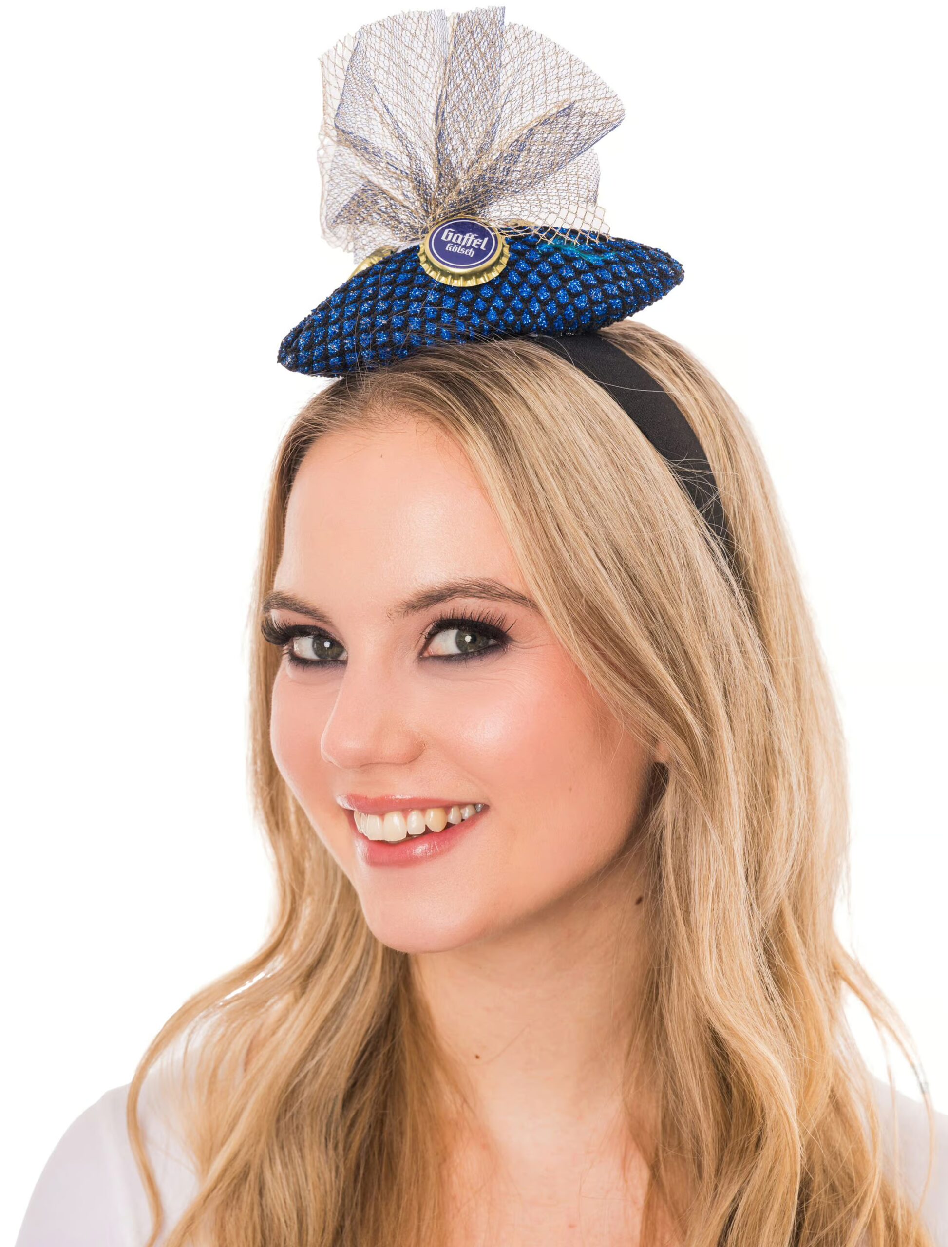 Haarreif Mini-Dreispitz Gaffel Kronkorken blau one size, ideal für Karneval & Fasching