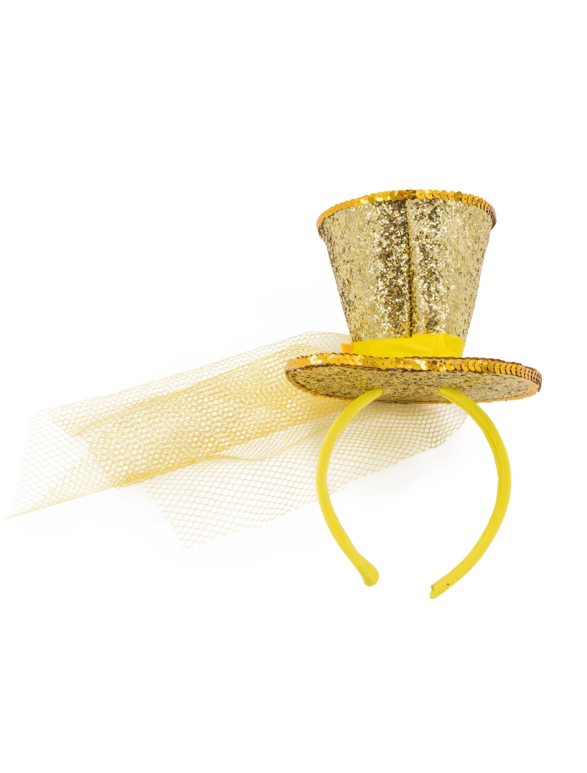 Kostümzubehör Haarreif Mini Zylinder Schleier gelb