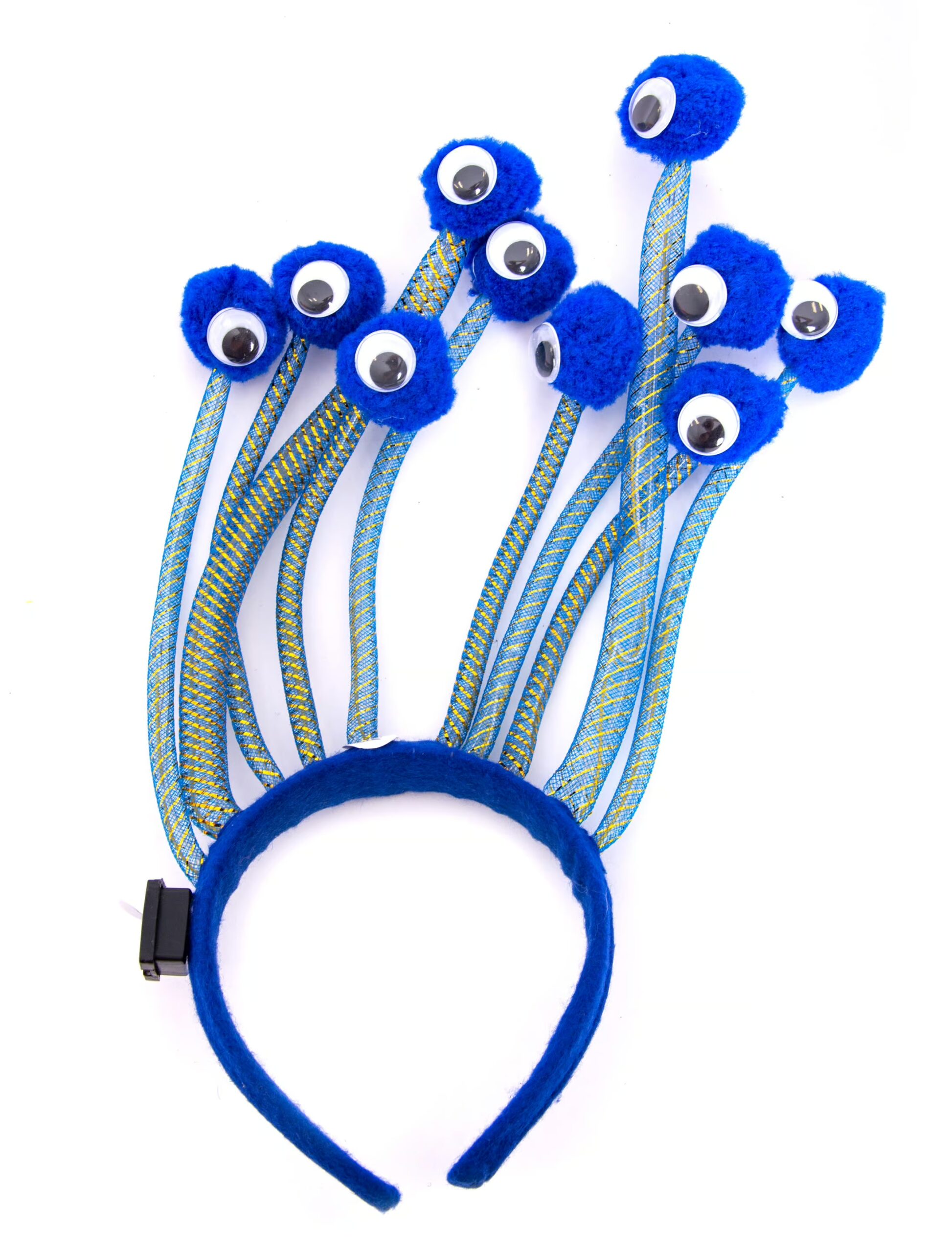 Für alle echten Fans der fremden Galaxien und fernen Planeten ist der Haarreif mit leuchtend blauen Augen optimal geeignet. Auch wenn unter Wissenschaftlern keine Einigkeit über das Aussehen eventueller Lebewesen außerhalb der Erde besteht, so wie die leuchtend blauen Augen auf dem Haarreif könnten die Sehzellen der Gestalten zumindest gestaltet sein. Die wild in alle Richtungen abstehenden Augen lassen in jedem Fall auf gute Sehfähigkeiten schließen und machen Deine Verkleidung zum Highlight auf jeder überirdischen Party.