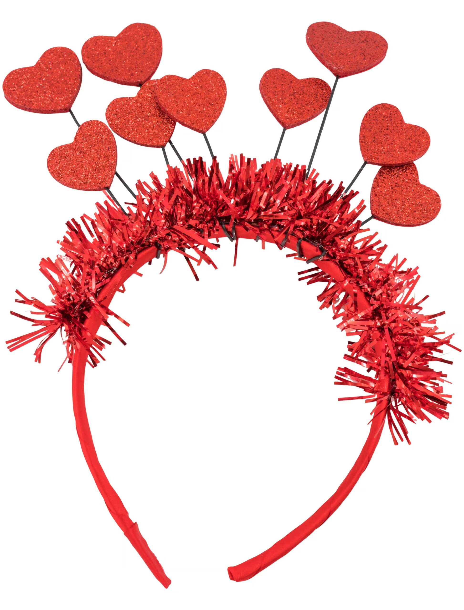 Kostümzubehör Haarreif mit Lametta und Herzen rot
