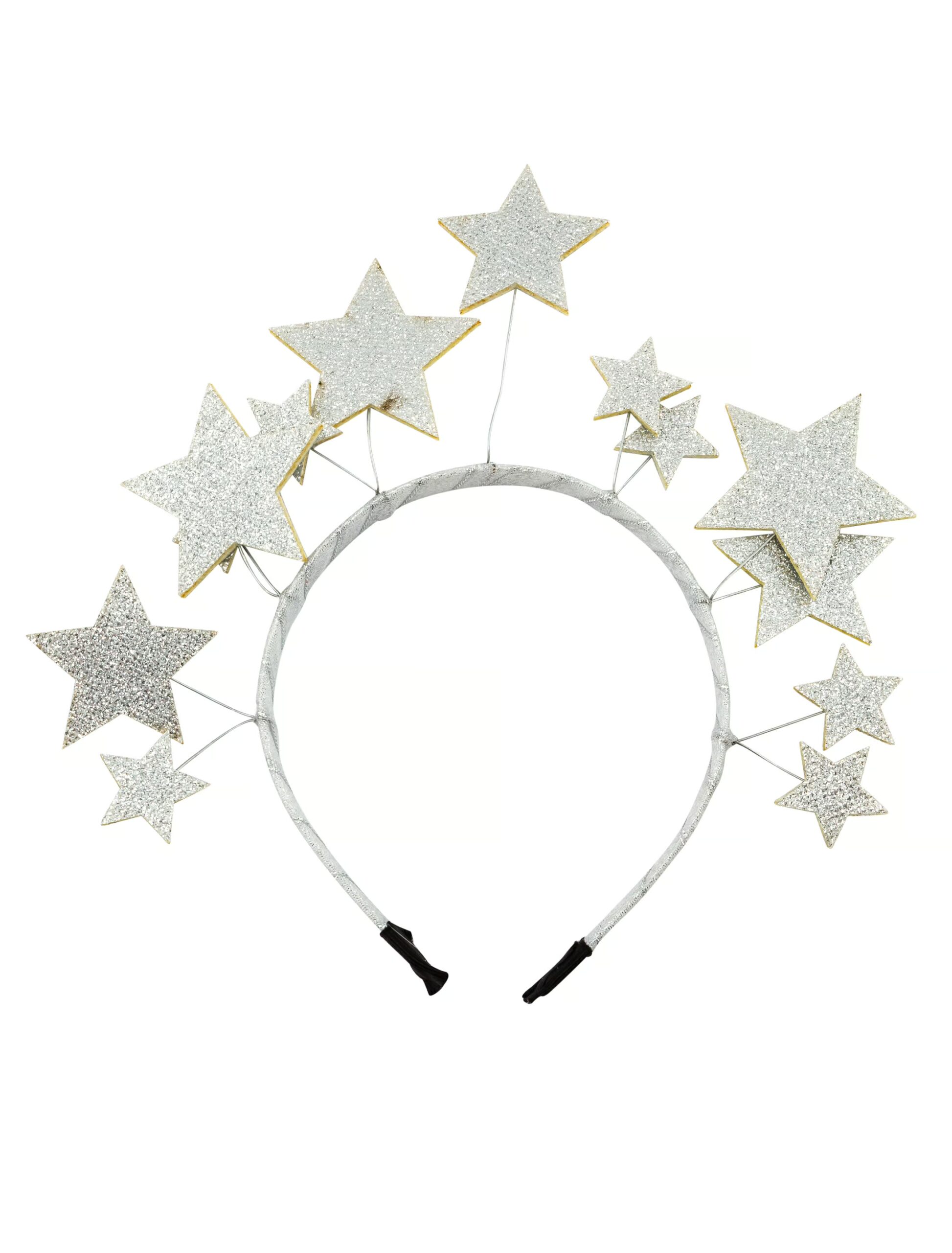 Ein bezaubernder Haarschmuck für Eisprinzessinnen, Glitzerfeen, Engel und andere märchenhafte Wesen ist unser Haarreif mit den vielen, silbernen, glitzernden Sternen. Er ist ein absoluter Eyecatcher, den Du mit vielen Teilen aus unserem Shop toll kombinieren kannst. Mit ihm wertest Du Deine Kostümierung nicht nur zum Karneval und auf Mottopartys glanzvoll und dekorativ auf, sondern er ist auch himmlisches Accessoire, das Dein Weihnachtsoutfit stil- und glanzvoll perfektioniert.