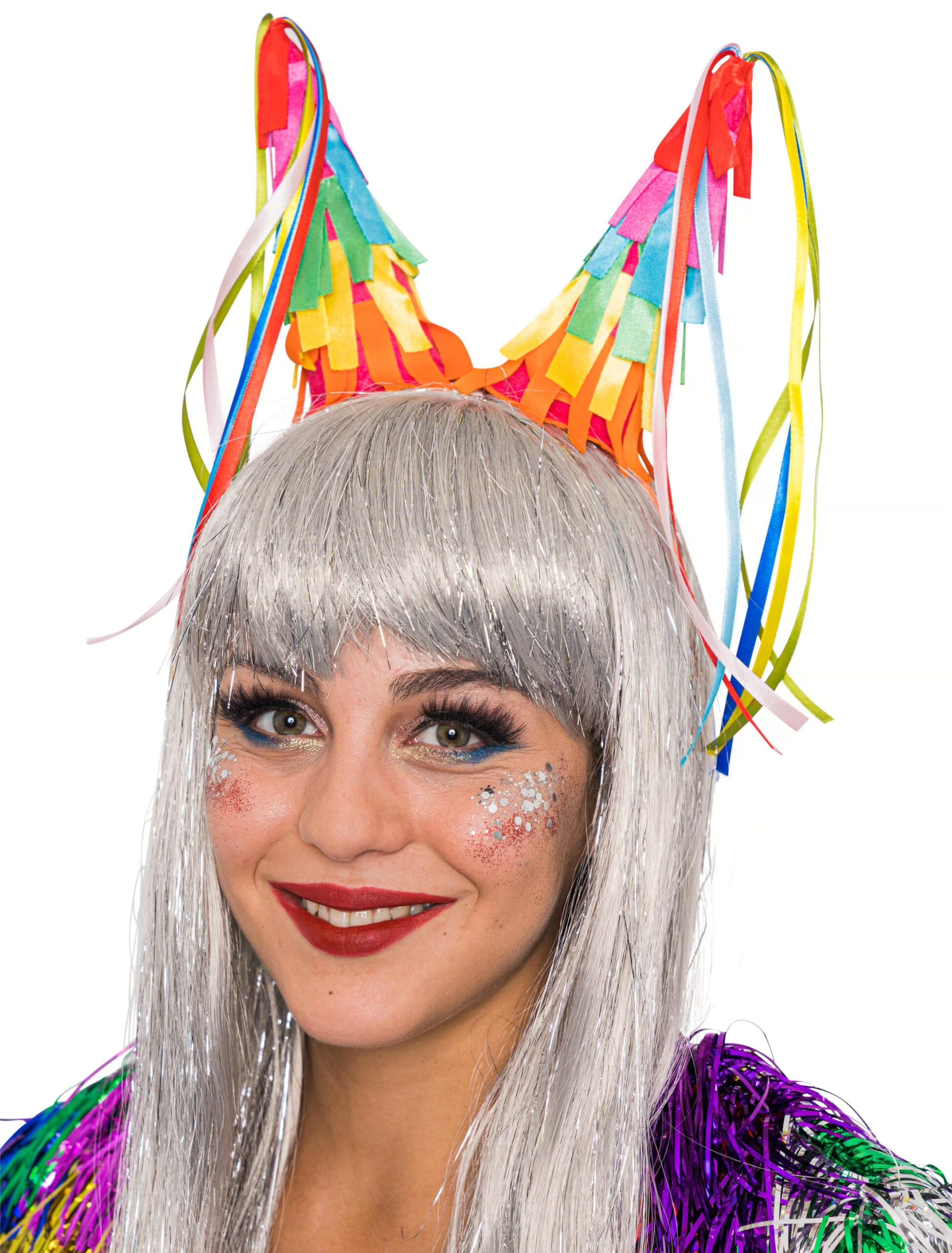 Wir haben da etwas für Dich, um Dein buntes Karnevals- und Faschingsoutfit perfekt aussehen zu lassen. Dieser bunte Piñata Haarreif ist ein echter Hingucker. Die Hörner haben eine Größe von 16 cm. Der Haarreif besteht aus 100% Polyester. Ein schöner Kopfschmuck zu Karneval, Fasching oder zur nächsten Mottoparty. Sei wer Du willst!