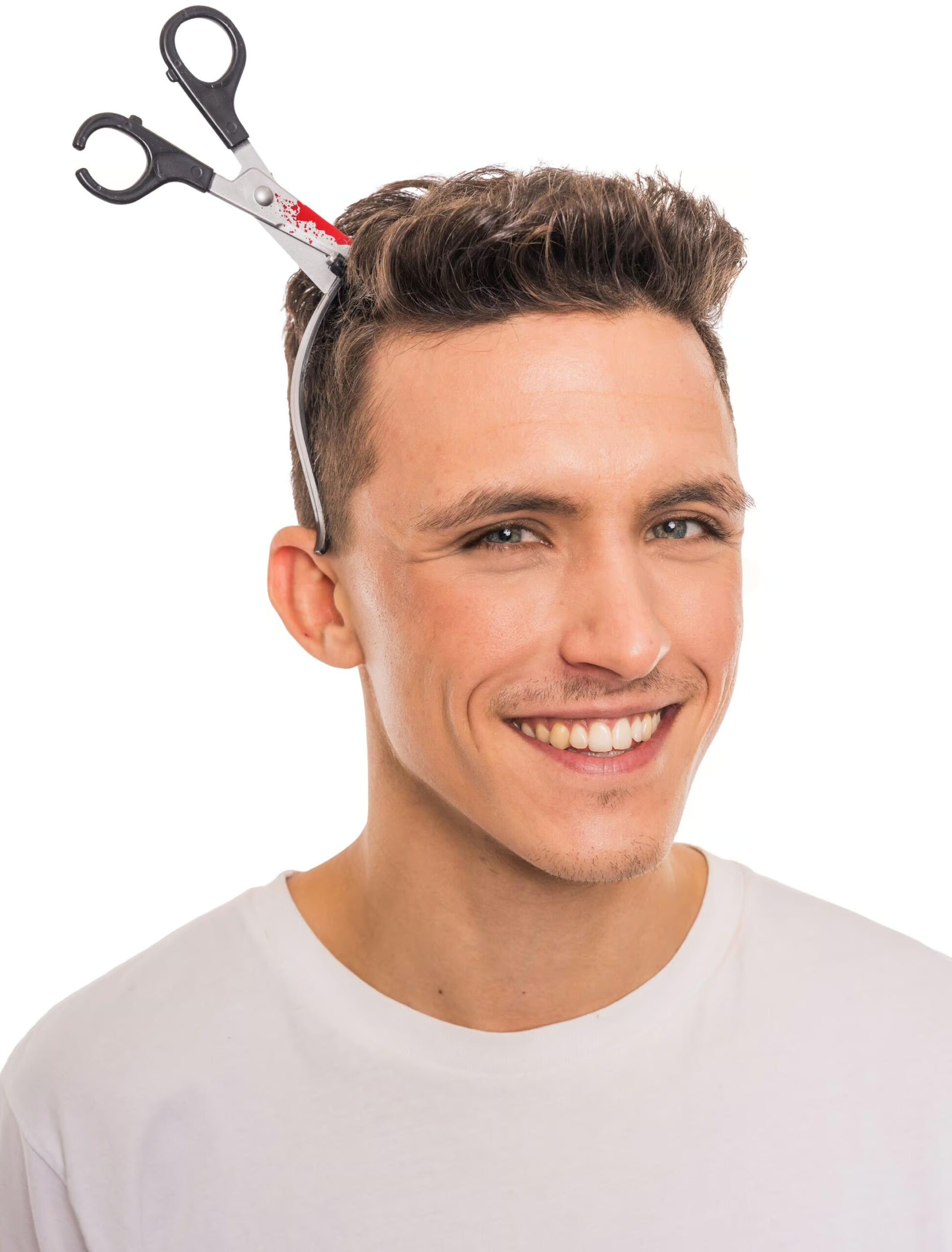 Kostümzubehör Haarreif Schere im Kopf schwarz/grau
