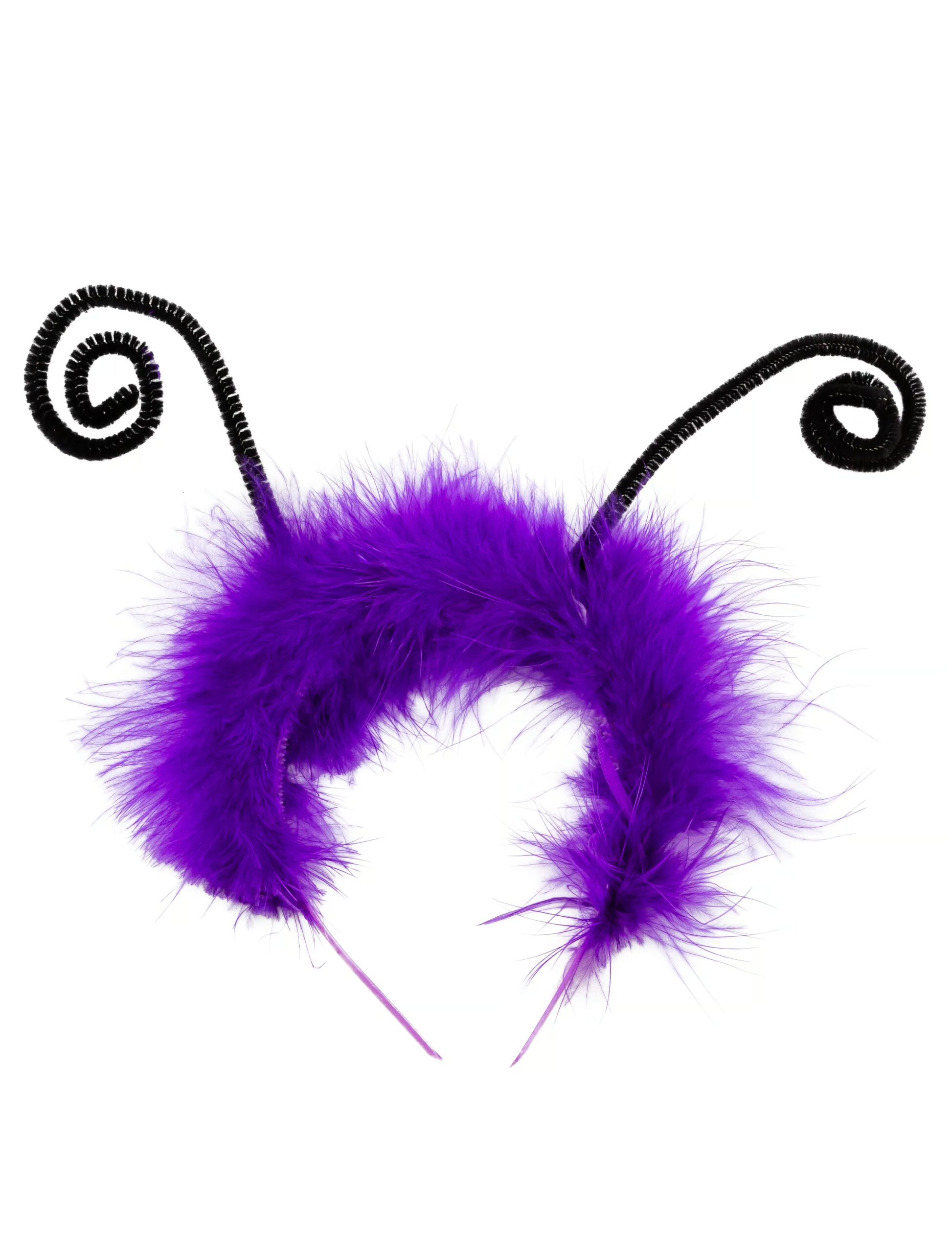 Ein süßes Kostüm-Zubehör für närrische Schmetterlingskinder, Feen und Elfen ist unser schöner Haarreif Schmetterling mit den lila Federn und den langen, gebogenen, schwarzen Fühlern, der Deine Kleine zusammen mit hübschen SchmetterlingsFlügeln und Accessoires aus unserem Shop, zu einem zauberhaften Falter macht, der den Gästen auf Kindergeburtstagen und -partys sowie zum Karneval und Fasching ein Lächeln ins Gesicht zaubert.