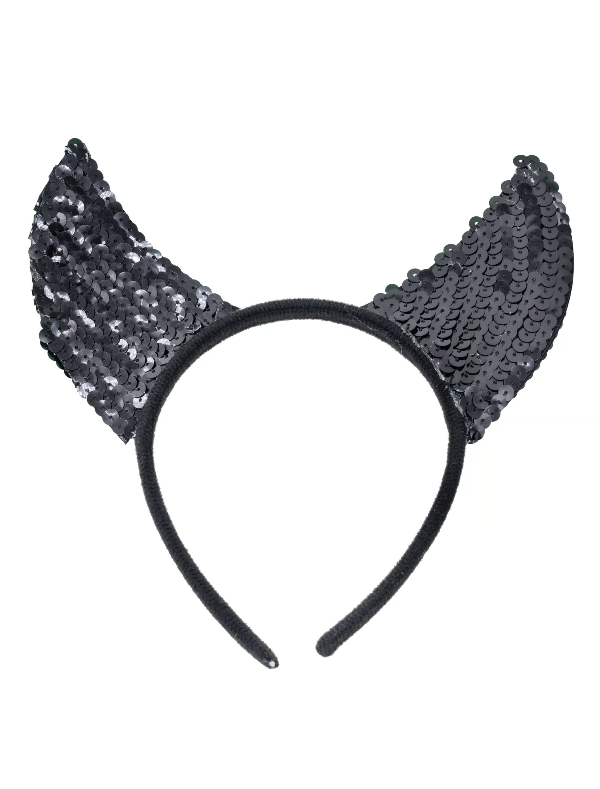 Kostümzubehör Haarreif Teufel mit Pailletten schwarz