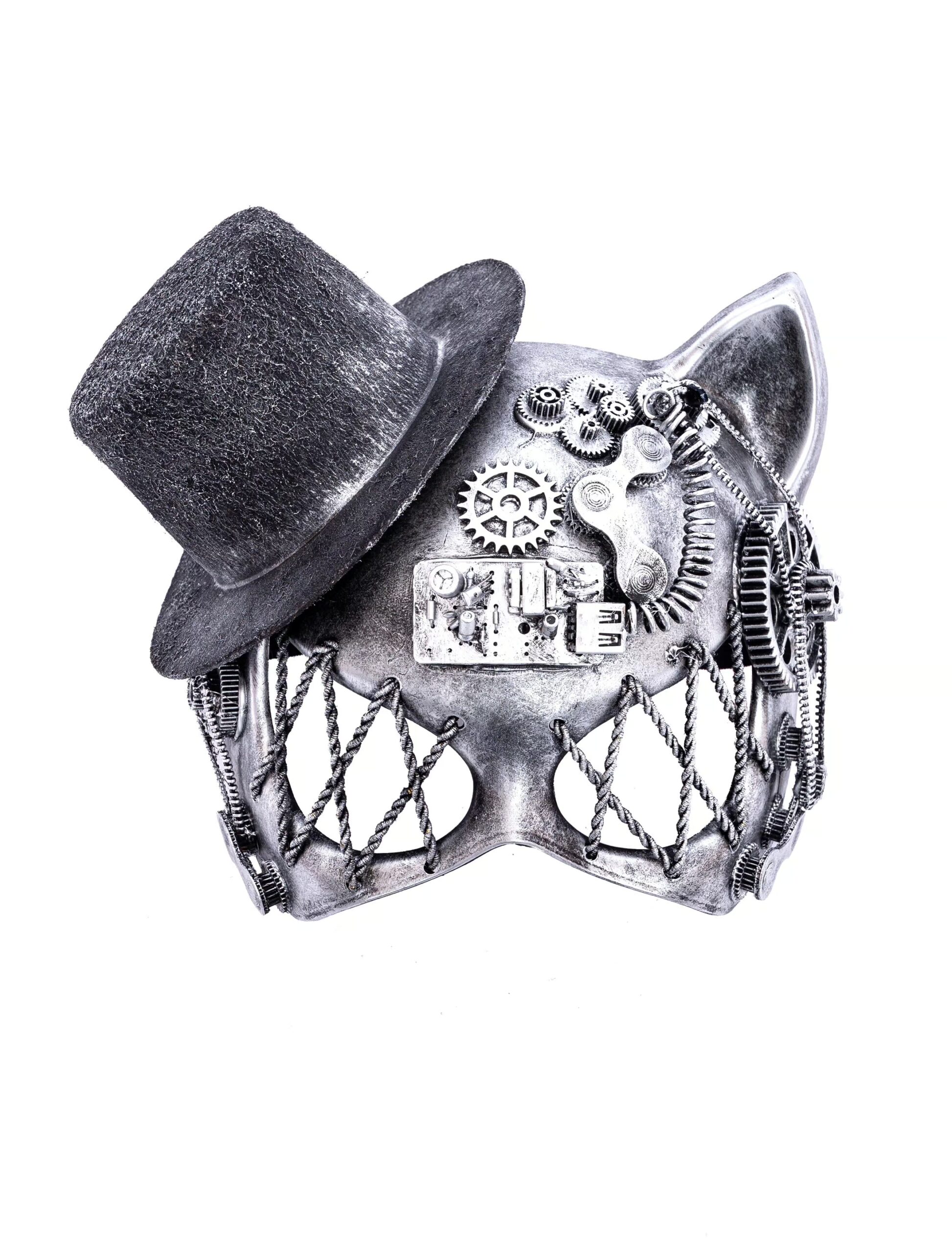 Halloween ist zwar eigentlich ein amerikanisches Fest am 31. Oktober, doch auch in Deutschland wird es gern gefeiert. Du suchst ein ausgefallenes Kostüm? Dann bestelle Dir diese Steampunk Maske in Silber, die mit Gummiband ausgestattet ist. Sie sieht aus wie aus Metall, besteht aber zu 90% aus Polyester und zu 10% aus Plastik. Der Minihut ist ein extravagantes Detail.