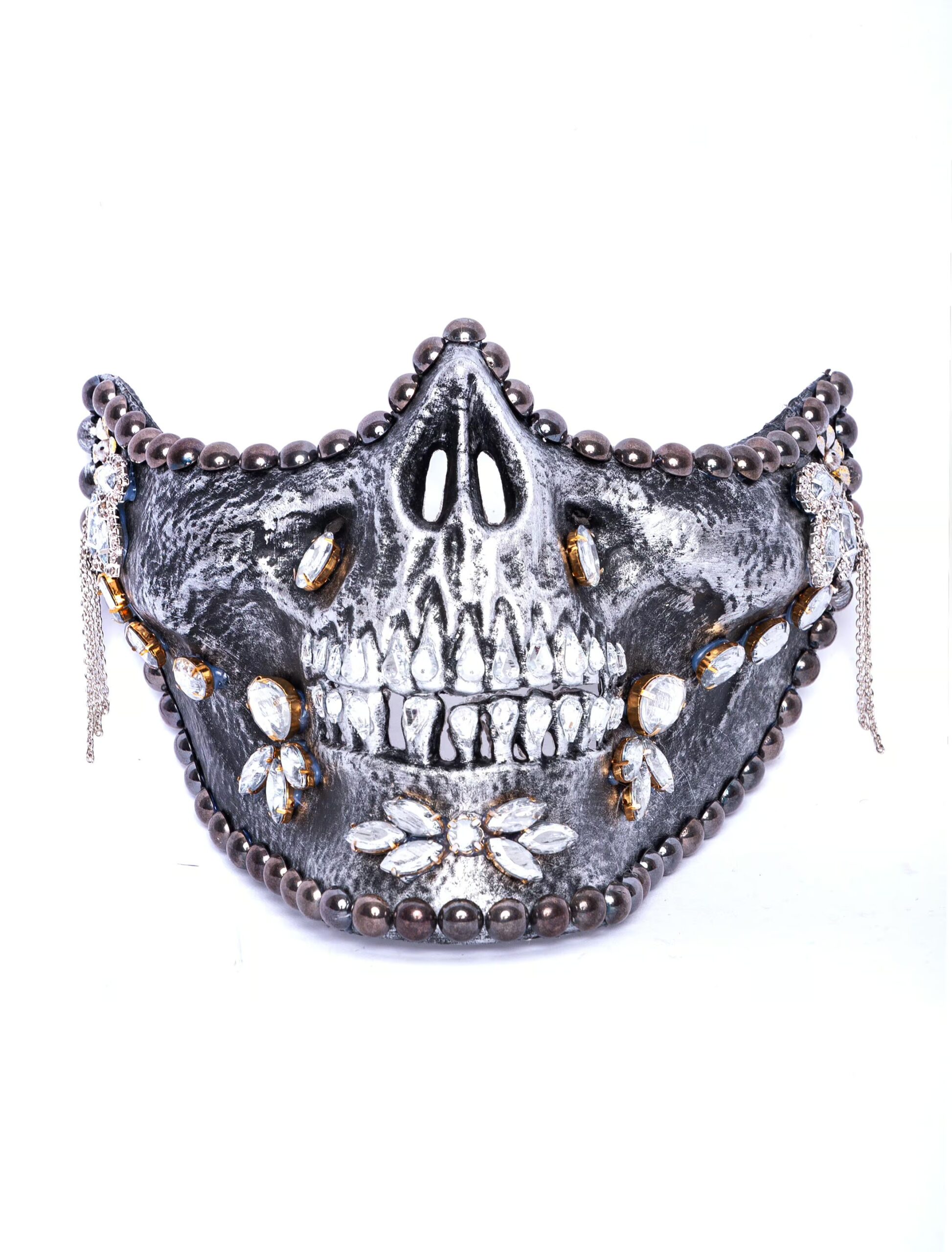 Na, das kann ja heiter werden zu Halloween! Du setzt diese Halbmaske auf und darfst nun unverschämte Fragen nach Deinem Zahnarzt beantworten! Ignorier sie einfach. Dein Steampunk Auftritt ist geritzt, mit oder ohne guten Zahnarzt. Dazu noch ein verruchtes Kostüm, und Du kannst locker den Abend fern Deiner sonstigen Realität als Ehrenpunk verbringen. Ketten, ein bisschen Glitzer, Zähne, aarhgh!
