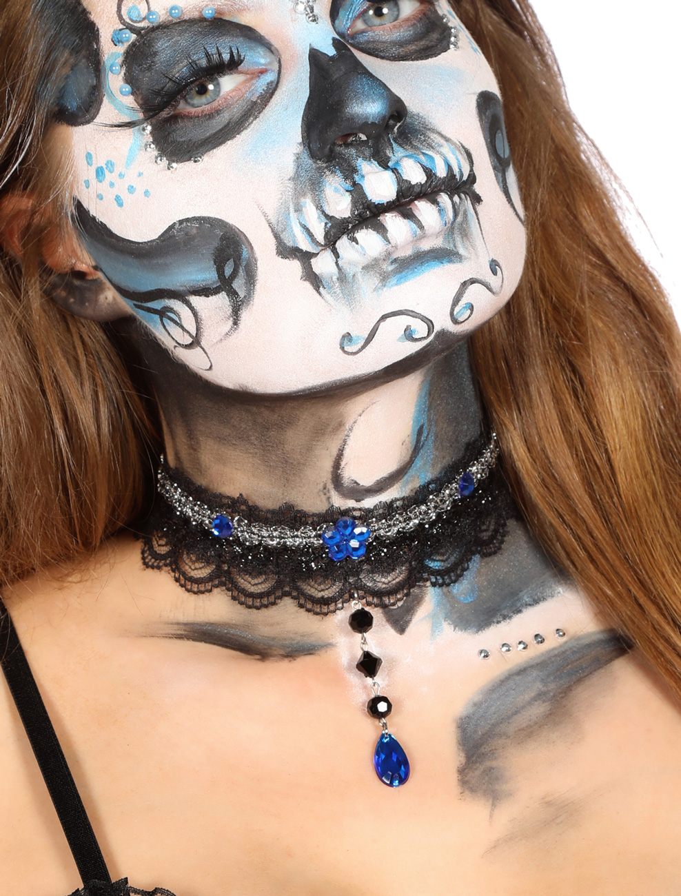Kostümzubehör Halsband schwarz mit blauen Steinen
