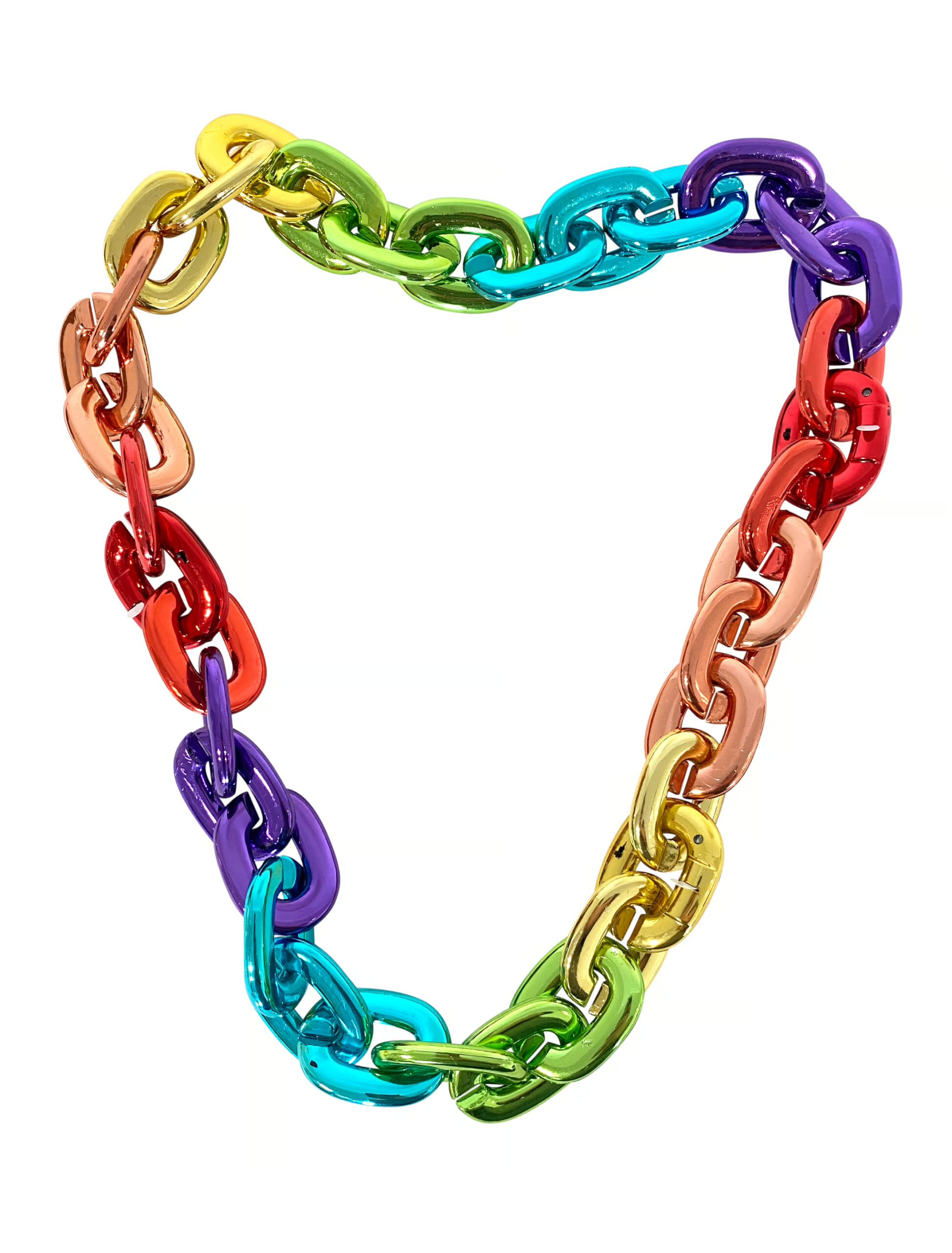 Diese bunte, opulente Halskette mit den großen, glänzenden Gliedern und der originellen LED Beleuchtung ist ein super Accessoire für alle, die zum Karneval, Fasching und auf Mottopartys ihren individuellen und kreativen Style voll ausleben wollen. Diese Kette passt sowohl zu Deinen coolen Aufreißer und Rocker Kostümen, ist aber auch eine wirkungsvolle Ergänzung für Deine flippigen Disco-, Hippie- und Bad Taste-Outfits.