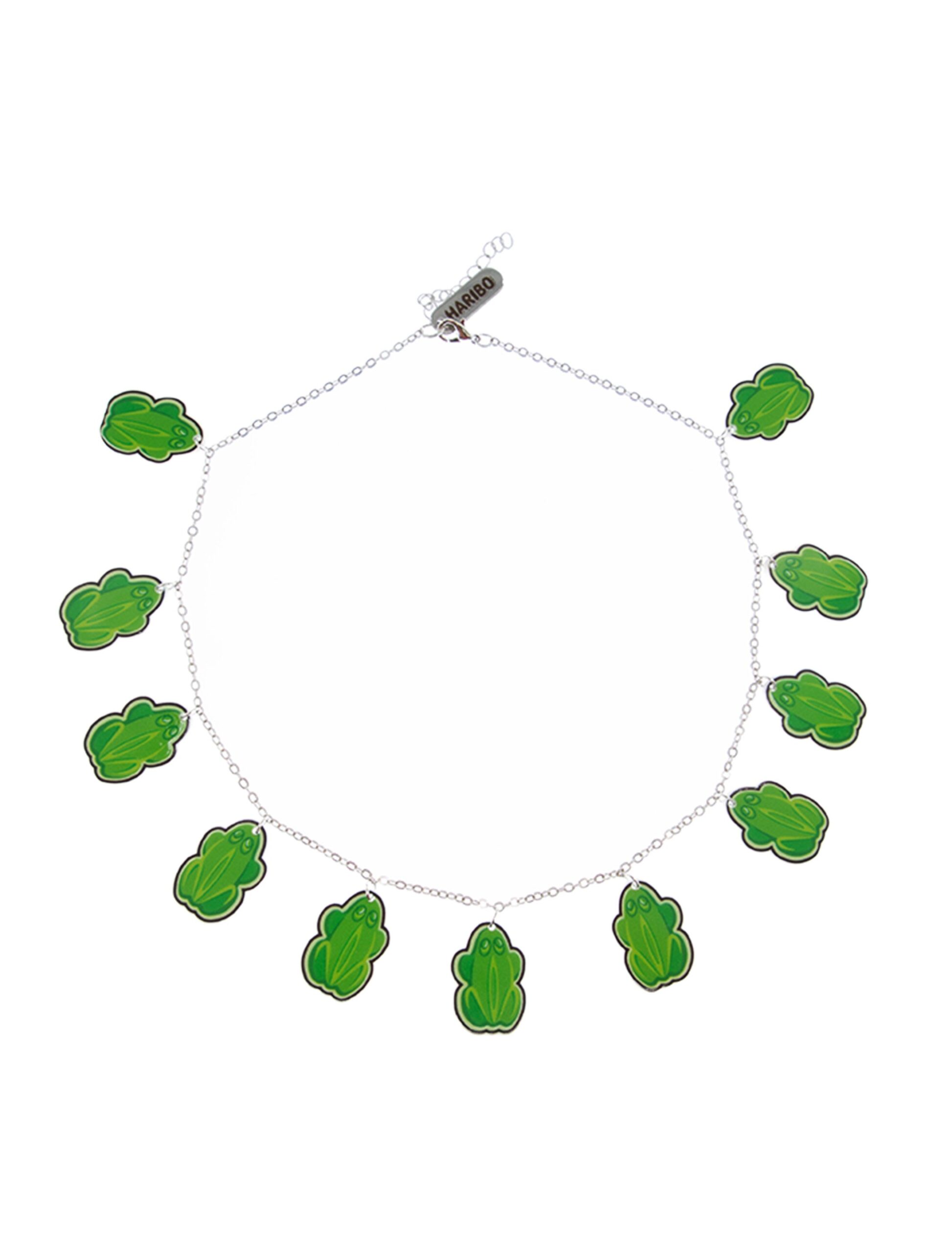 Hey du stylischer Trendsetter! Bist du bereit für das süßeste Accessoire, das deinem Look den ultimativen Kick verpasst? Hol dir jetzt die exklusive Halskette HARIBO Quaxi in Grün, nur bei Deiters zu haben! Diese Halskette ist nicht nur ein Hingucker, sondern auch ein Must-Have für alle, die gerne süße Akzente setzen. Inspiriert von den legendären HARIBO Quaxi Fröschen, bringt sie nicht nur Farbe in deinen Tag, sondern auch eine extra Portion Spaß. Das lebendige Grün der Kette ist genau so fröhlich wie der Geschmack der Frösche selbst. Trage sie mit Stolz und sei bereit, alle Blicke auf dich zu ziehen – denn wer kann schon an einer grünen Quaxi-Halskette vorbeischauen, ohne zu lächeln? Diese stylische Kette ist nicht nur ein modisches Statement, sondern auch super angenehm zu tragen. Das leichte Material sorgt dafür, dass du dich den ganzen Tag über wohl fühlst, egal ob du sie zu einem schicken Outfit oder lässig im Alltag kombinierst. Überraschung! Die Halskette kommt in einer
