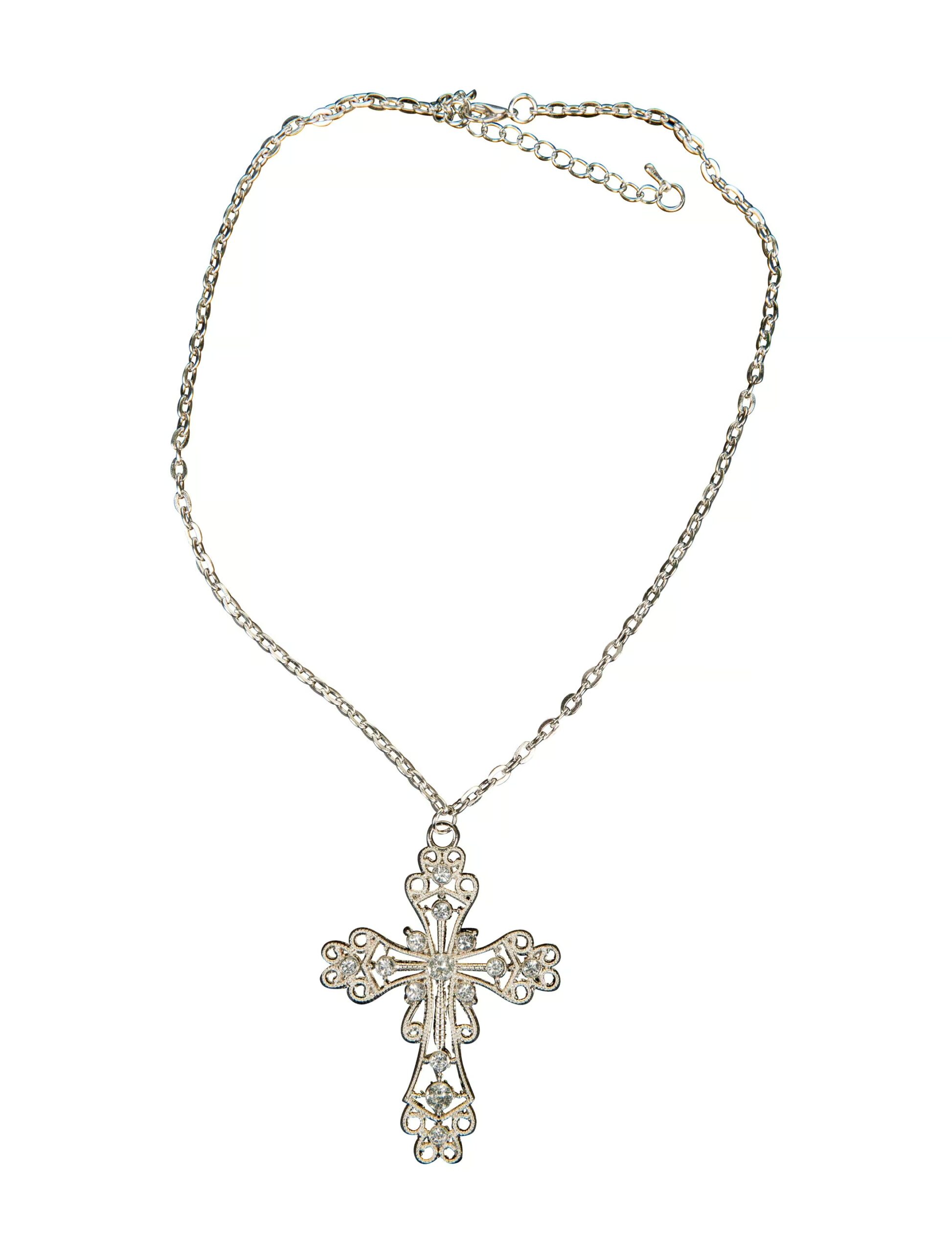 Du bist zu einer Halloweenparty eingeladen und suchst noch den letzten Schliff für Deine schaurige Verkleidung? Gar kein Problem! Unsere silberne Halskette mit Kreuz darf hier nicht fehlen. Die Halskette hat eine Länge von 45 cm. Das Kreuz hat eine Größe von 7 cm. Dieses schaurige Accessoire passt perfekt zu Deinem Halloween Kostüm. Das Produkt beinhaltet nur eine Halskette.