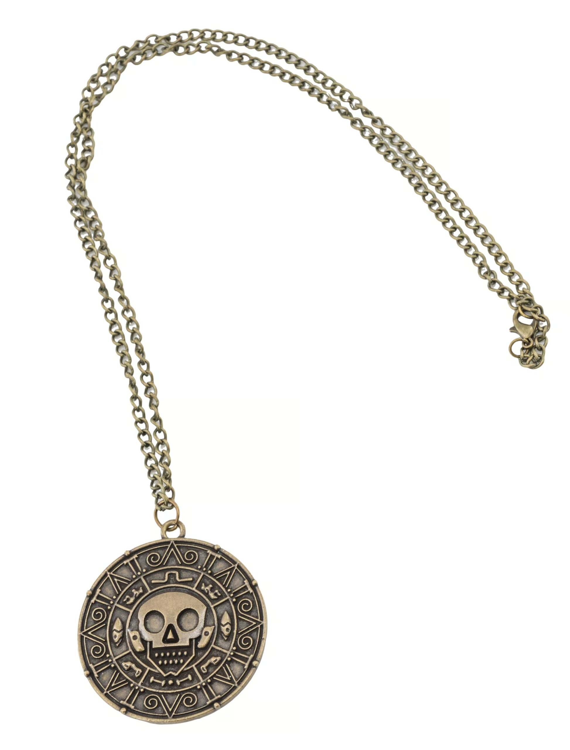 Kostümzubehör Halskette Medaillon Totenschädel gold