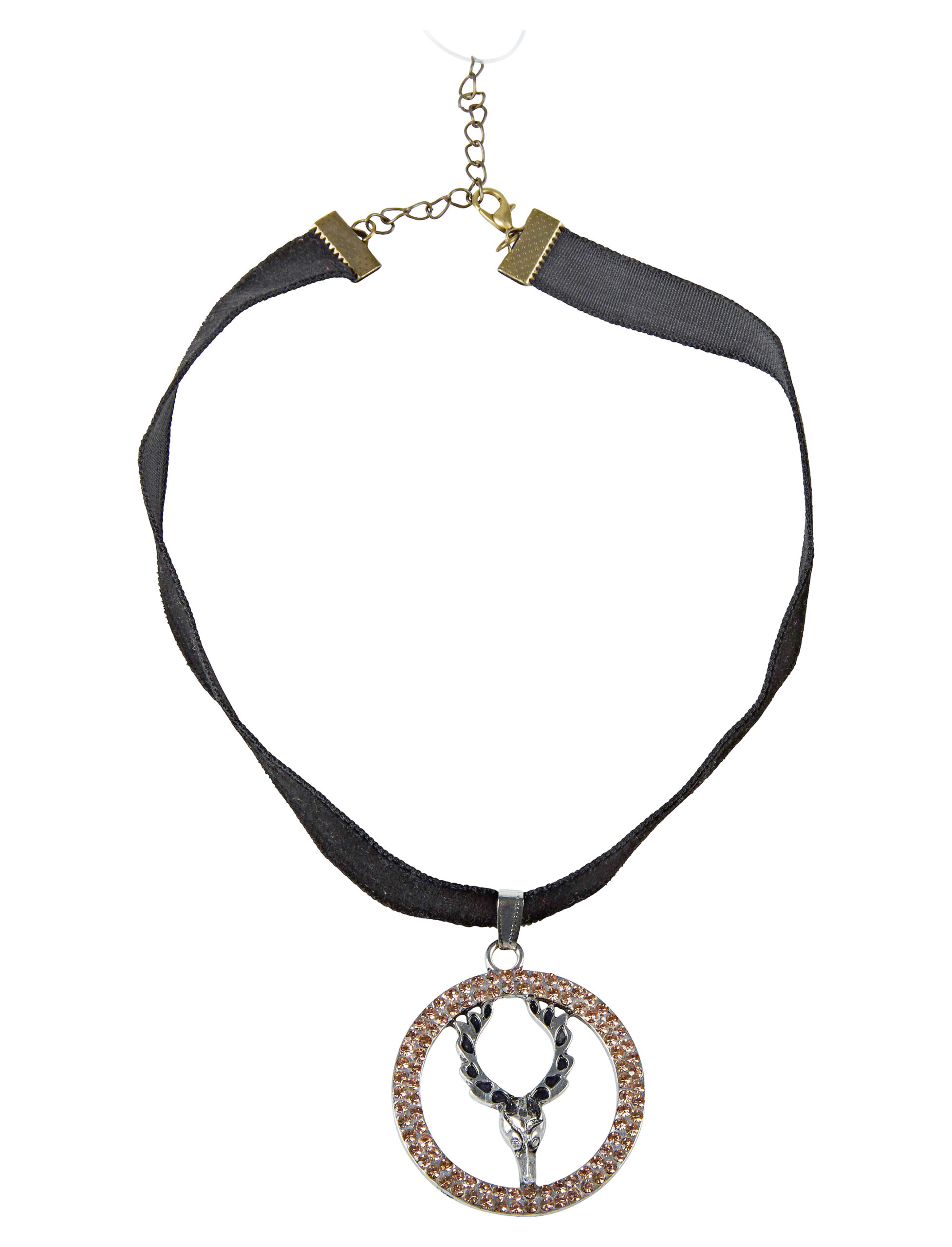 Kostümzubehör Halskette mit Hirschkopf Strass Farbe: silber