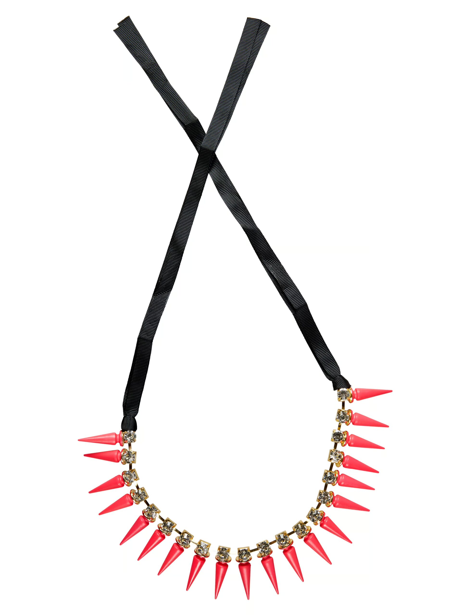 Diese Kette ist wirklich auffällig. Du kannst sie gut zu punkigen Kostümen tragen und machst so auf jeden Fall auf Dich aufmerksam. Diese Halskette mit Stacheln neonpink macht Dein Outfit komplett. Das Band ist aus 100% Polyester gefertigt, die Nieten bestehen aus Kunststoff. Die ideale Halskette zu Deinem Outfit auf der nächsten Schwarzlicht- oder Glow Party.
