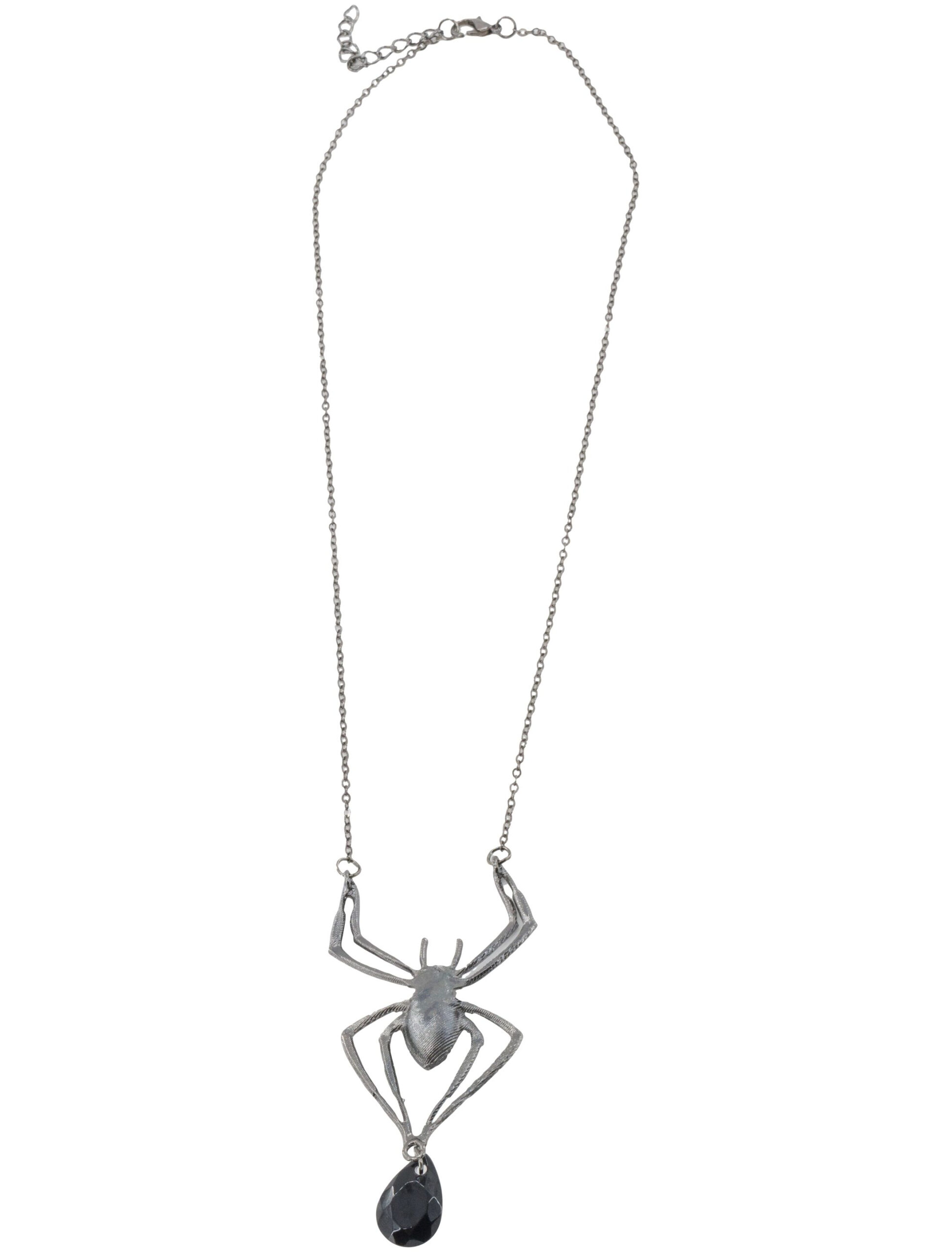 Kostümzubehör Halskette Spinne mit Kristall Damen schwarz