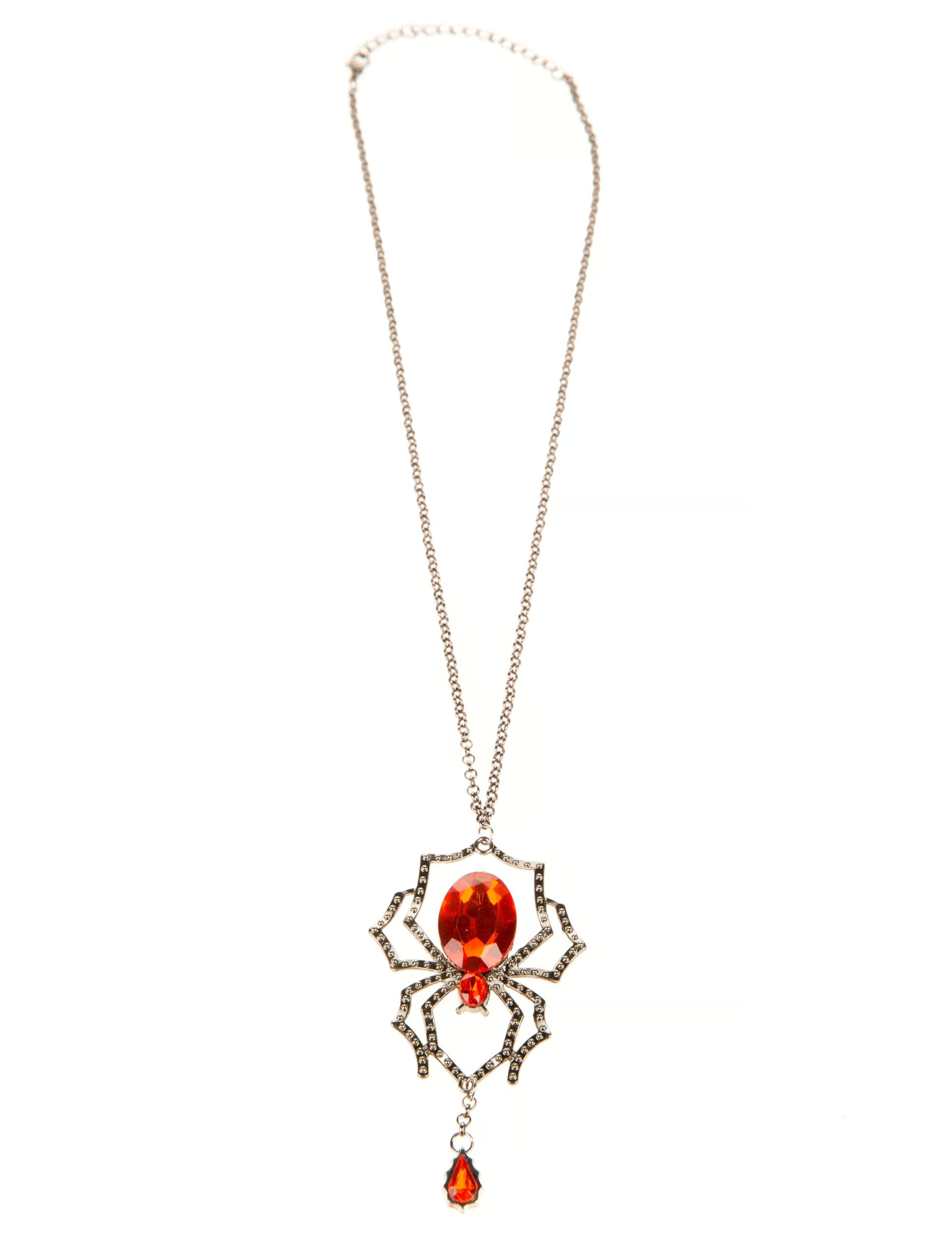 Kostümzubehör Halskette Spinne mit rotem Stein