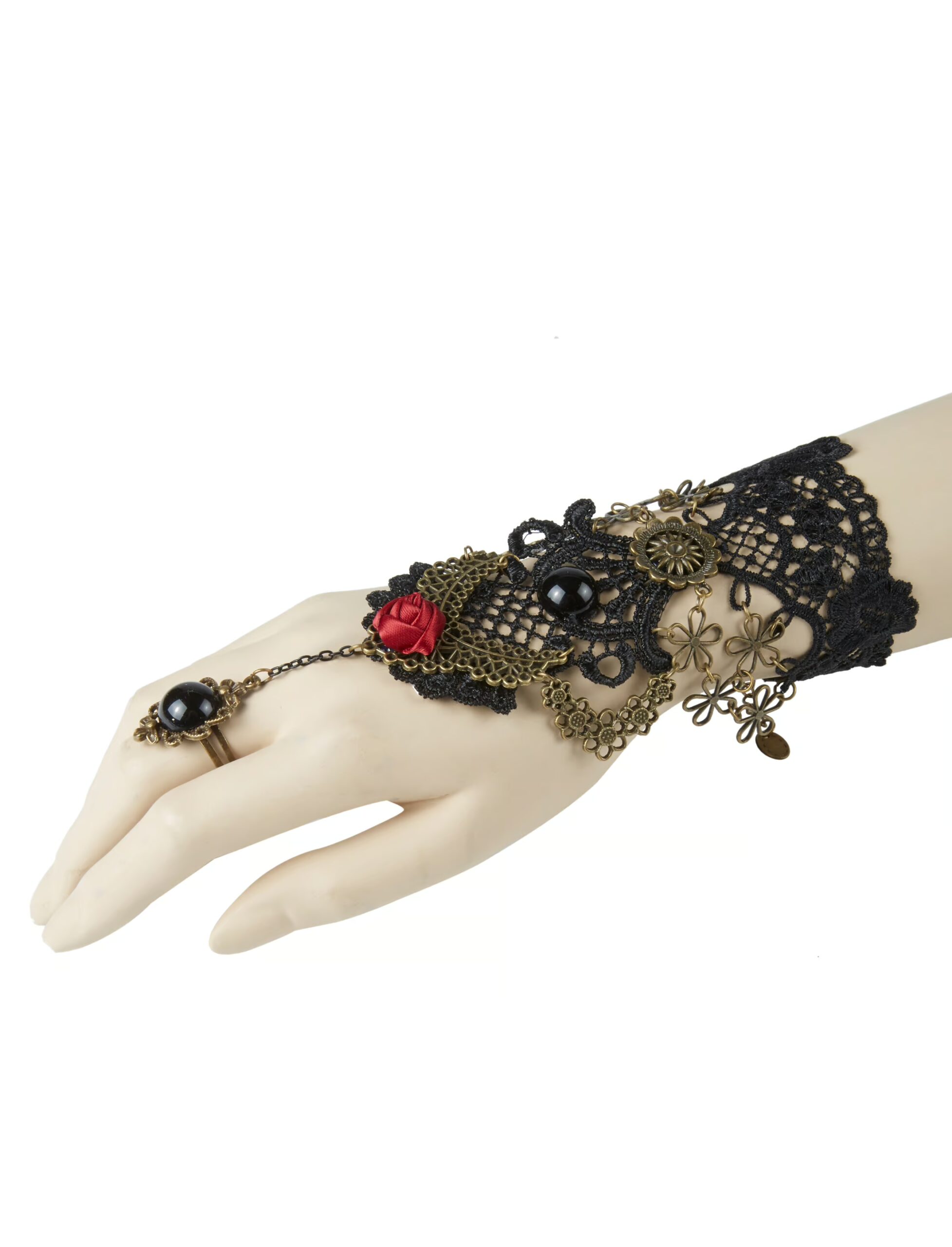 Du bist auf der Suche nach einem passenden Accessoire für Dein schickes Barock- oder Rokoko Kostüm? Diese Handkette mit rotem Stein in Schwarz macht Dein Outfit komplett. Die Spitze besteht aus 100% Polyester, das Dekor besteht aus 100% Kunststoff. Ein schönes Accessoire für Karneval und Fasching.