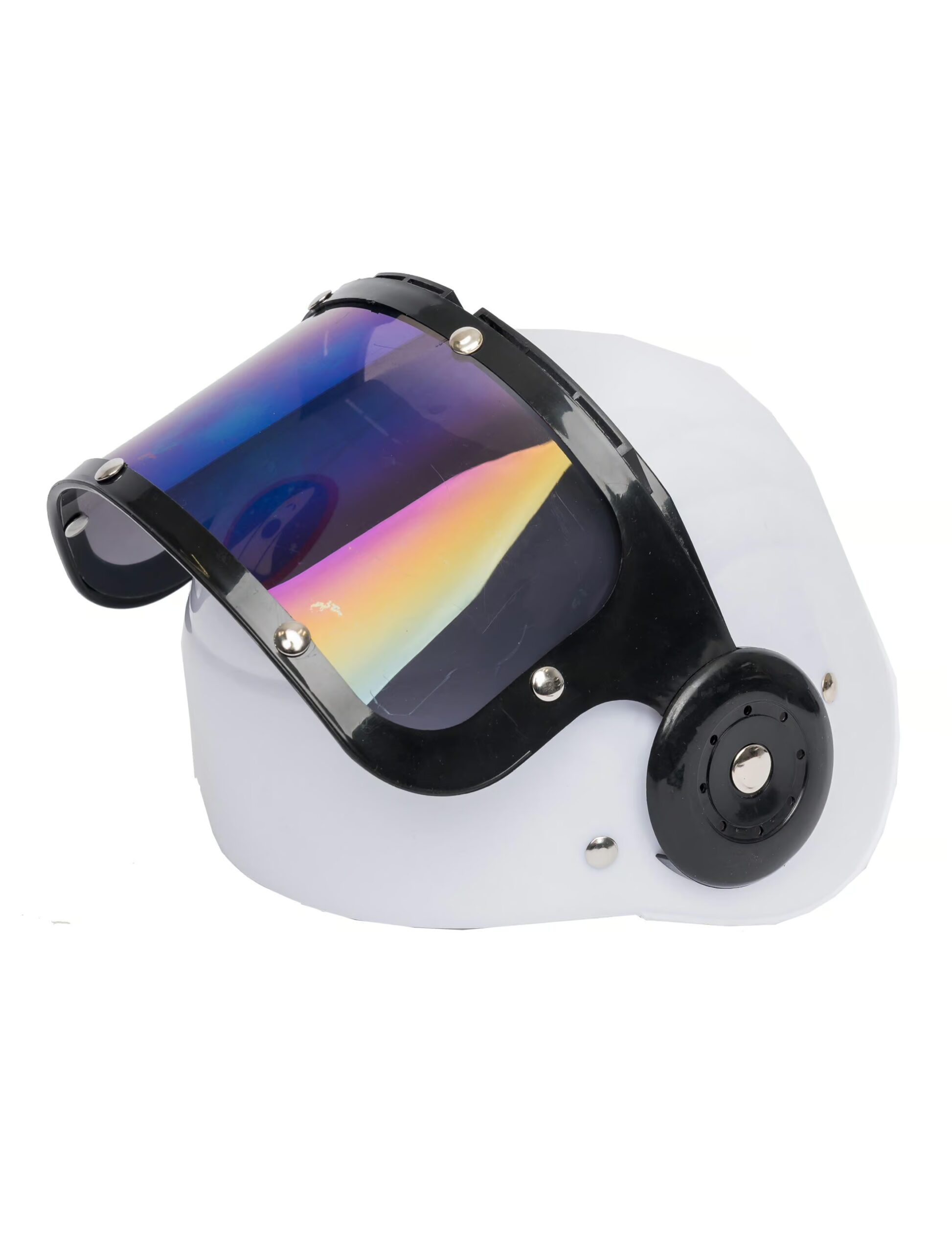 Super schick ist der weiße Astronautenhelm aus leichtem Kunststoff. Er ist angenehm zu tragen und rundet das Astronauten Outfit aus unserem Shop wirkungsvoll ab. Besonders interessant und dekorativ macht ihn, das klappbare und leicht transparente Visier, welches ihn zum attraktiven Hingucker macht. Mit diesem aparten Helm ist nicht nur Dein Astronautenkostüm für die nächste Motto-Party perfekt, auch futuristische Kostümideen lassen sich mit ihm umsetzen.