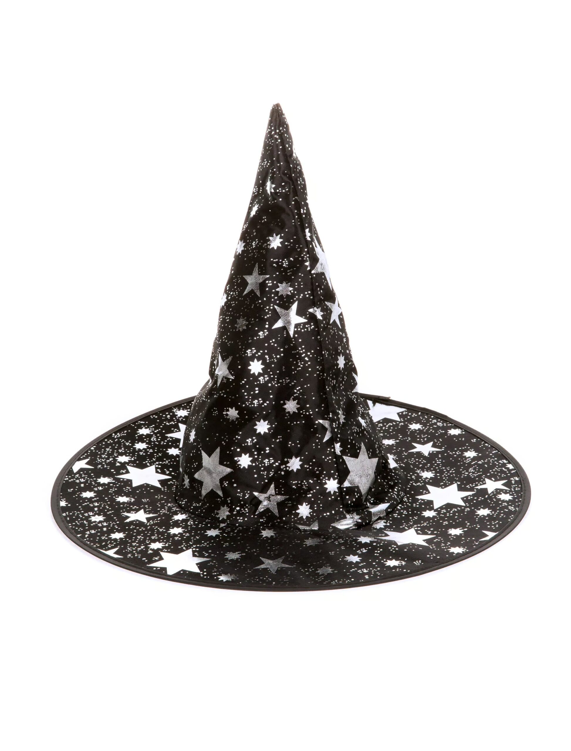 Kostümzubehör Hexenhut mit silbernen Sternen schwarz
