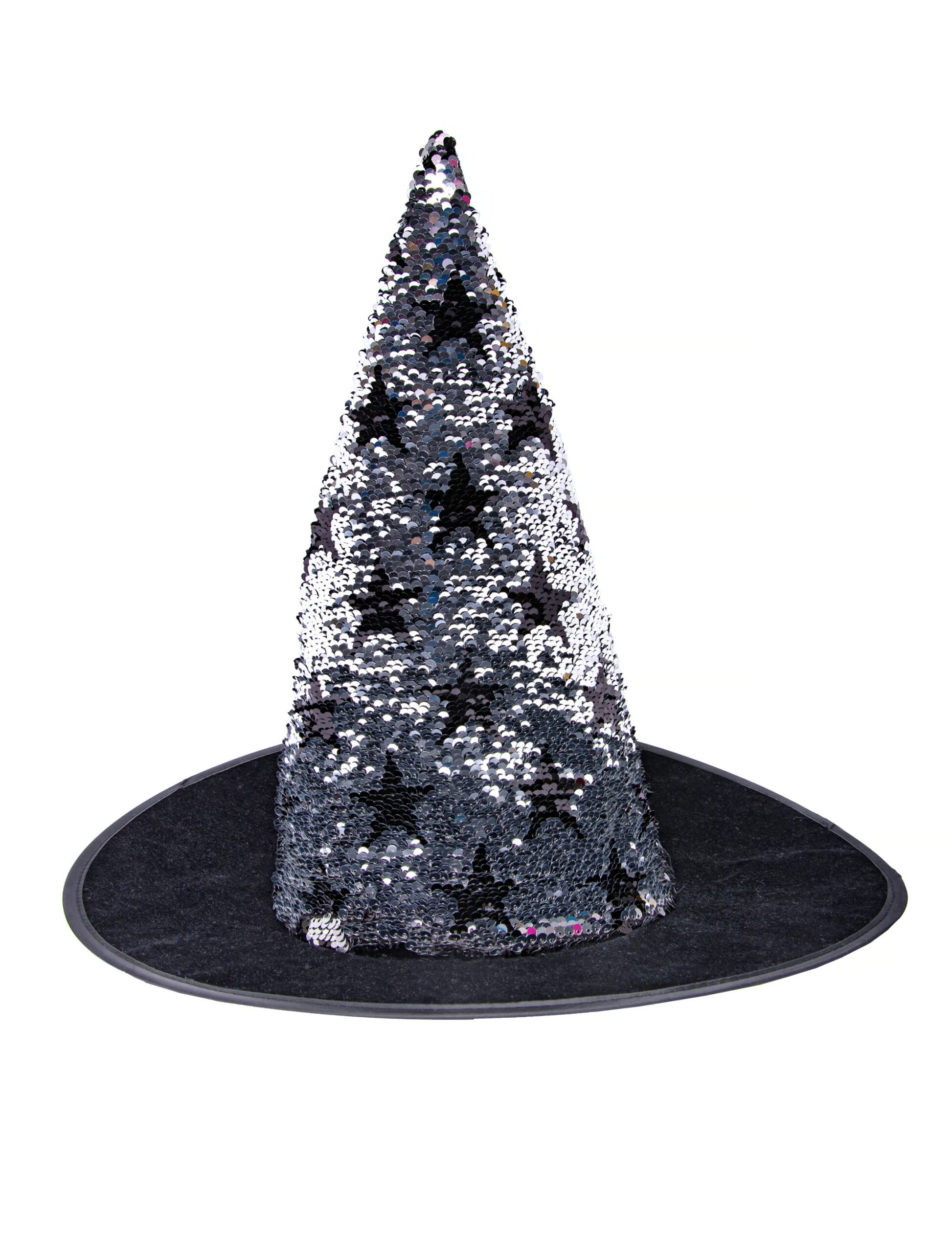 Benötigst Du noch das passende Accessoire für Halloween? Der Hexenhut, der mit schwarzen Pailletten verziert ist, ist ein richtiger Blickfang. Zusätzlich ist dieser mit Sternen ausstaffiert. Diese Kopfbedeckung macht Dein Kostüm perfekt, um ein gutes Auftreten als Hexe zu haben. Der Hut ist ca. 35 Zentimeter hoch und die Hutkrempe weist eine Samt- Optik auf.