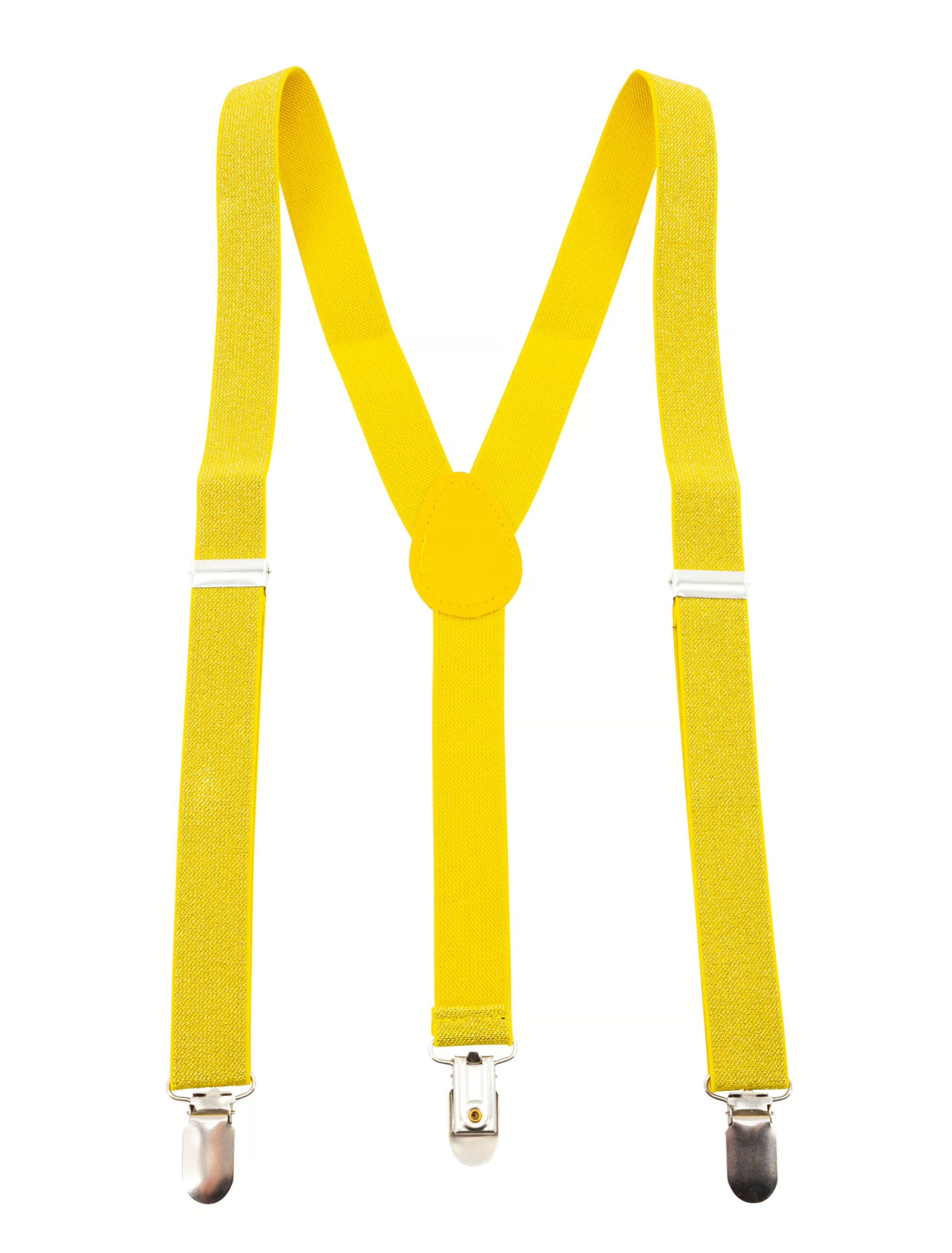 Mit diesen goldenen Hosenträgern gibst Du Deinem Kostüm den letzten Schliff! Die längenverstellbaren Hosenträger sind 2,5 cm breit, mit funkelndem Glitzer beschichtet und werden ganz einfach mit Metall-Clips am Hosenbund befestigt. Ein echter Hingucker und zugleich eine praktische Ergänzung für Dein Party-Outfit!