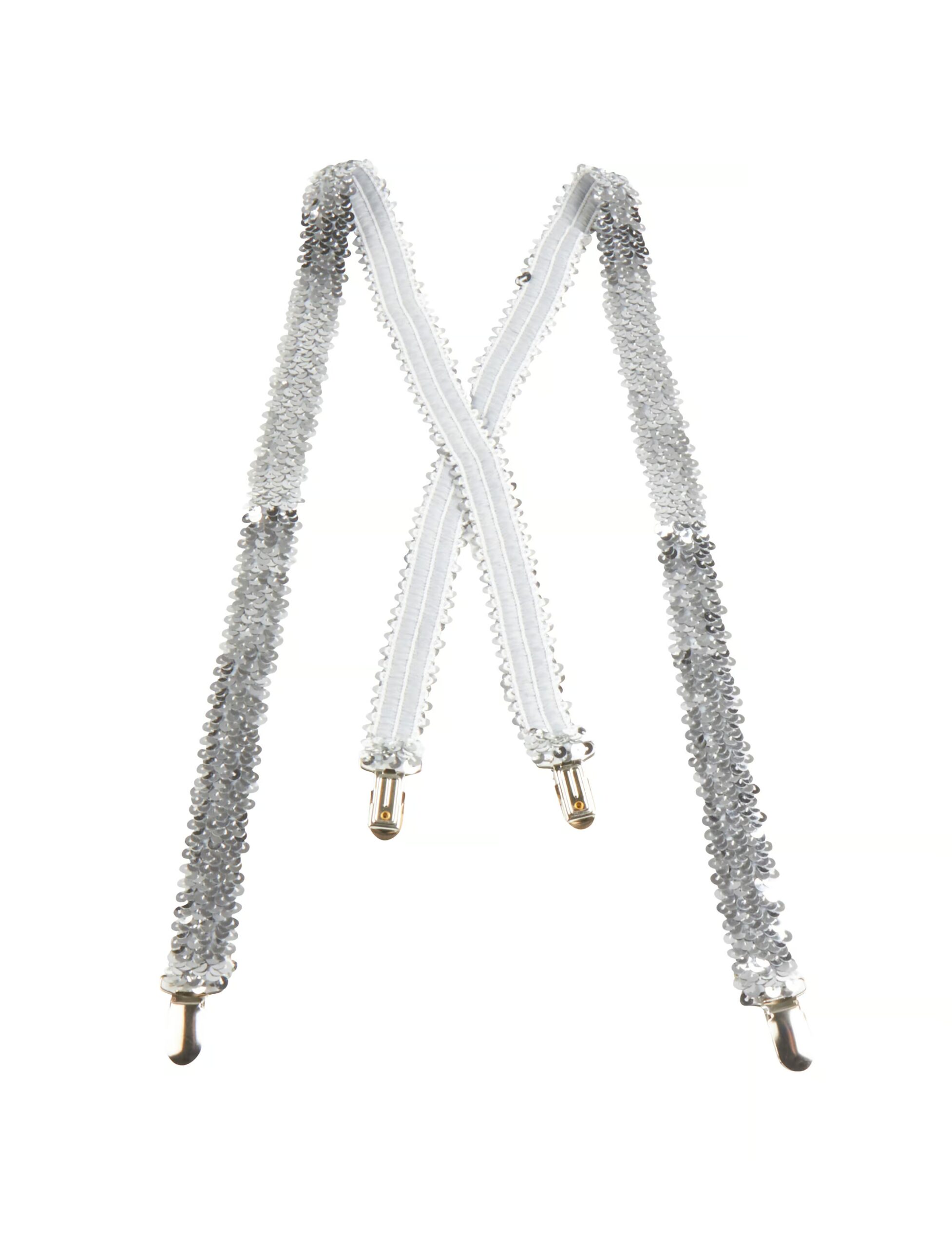 Du bist auf der Suche nach extravaganten Hosenträgern für Dein Kostüm? Dann ist diese auffällige Variante mit glitzernden Pailletten vielleicht genau das Richtige! Die silbernen Hosenträger halten Dein Beinkleid sicher an Ort und Stelle und fallen durch die funkelnden Pailletten garantiert auf!