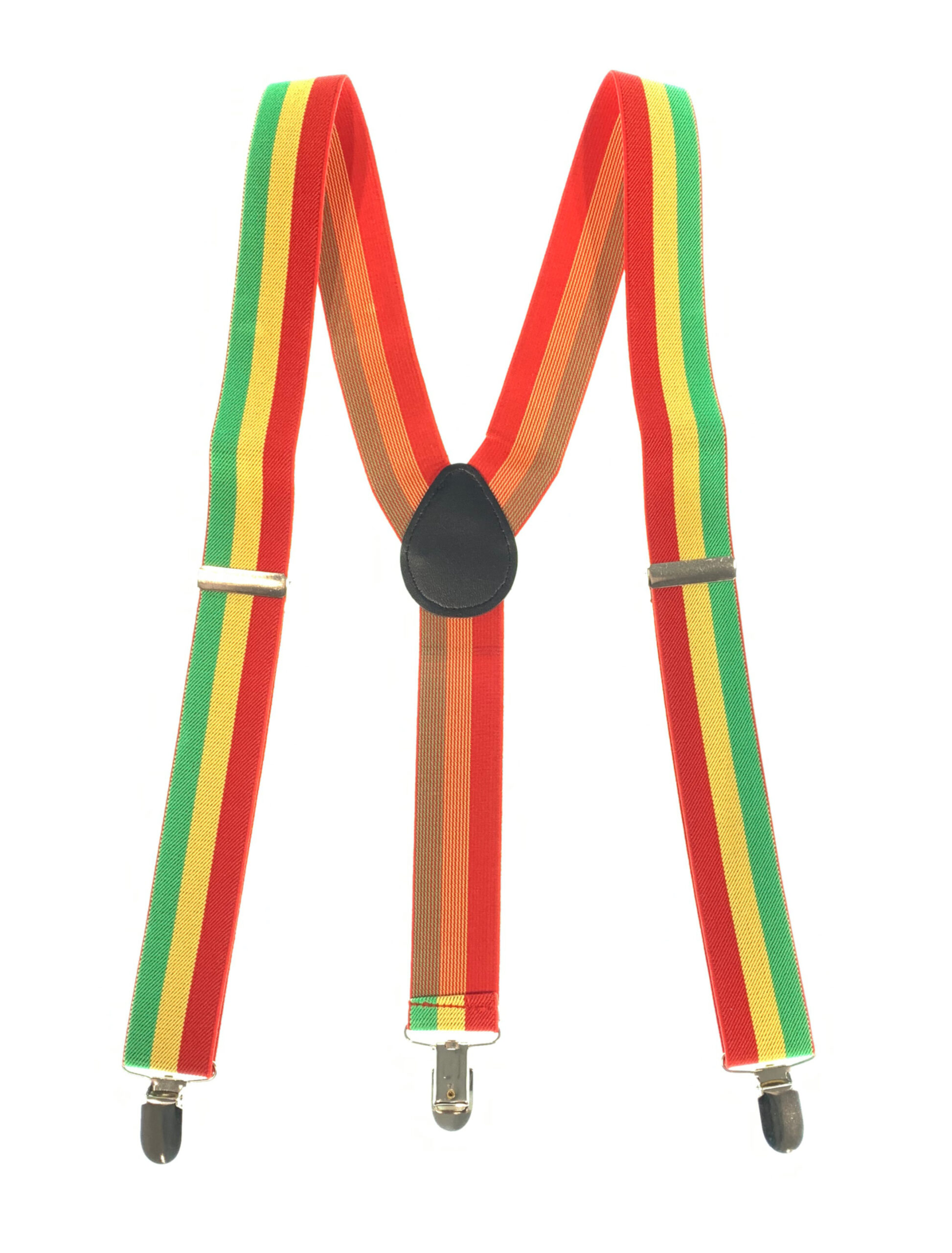 Eine schicke Ergänzung zu Deinem Reggae- oder Hippie-Outfit! Diese bunten Hosenträger in Rot-Gelb-Grün machen Dein Outfit komplett. Die Riemen haben eine Breite von ca. 3,5 cm und bestehen aus 100% Polyester. Sie sind längenverstellbar und mit Klammern ausgestattet. Ein ideales Accessoire zu Deinem Kostüm an Karneval und Fasching!