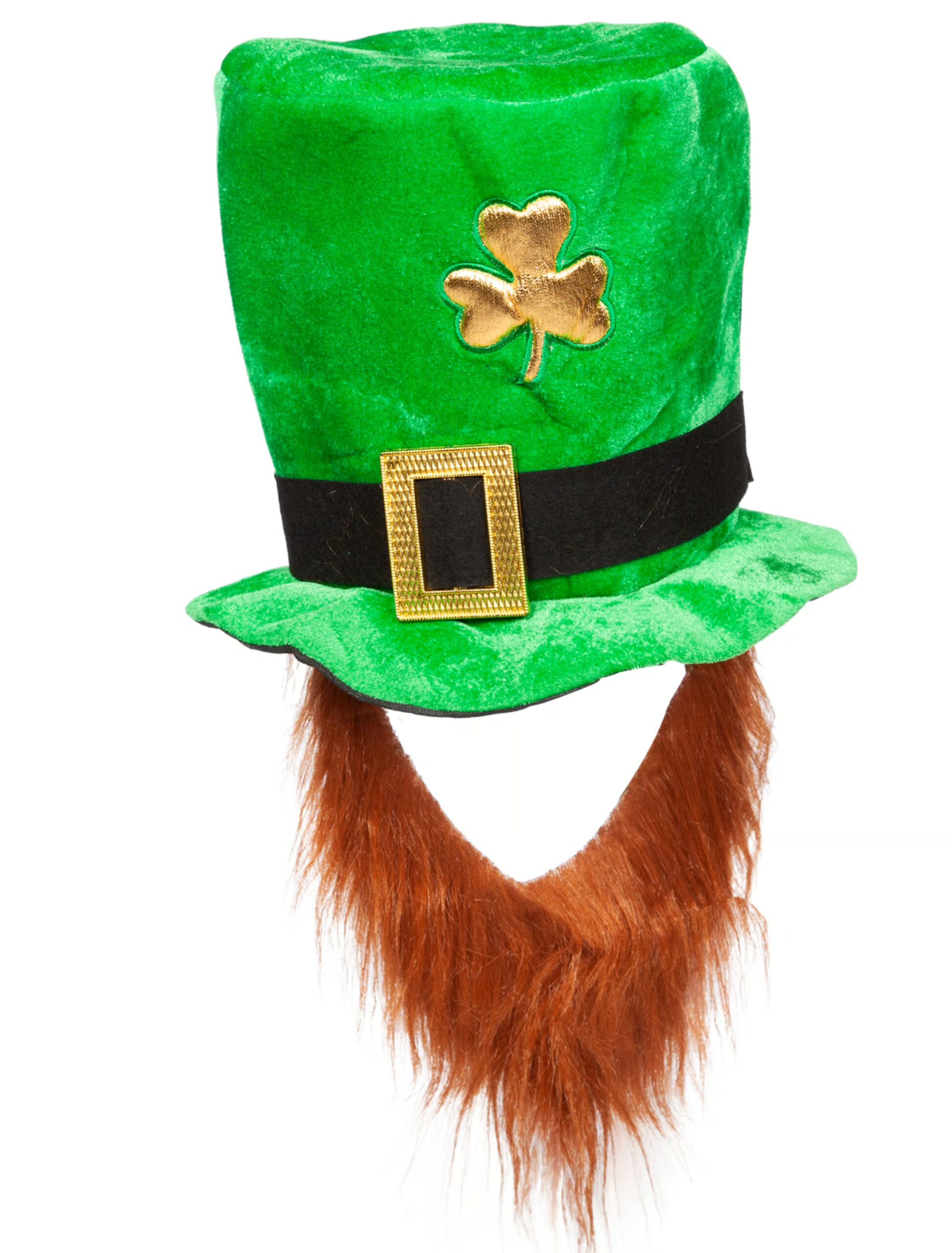 Mit unserem riesigen Zylinder auf dem Kopf wirst du nicht nur zum Mittelpunkt jeder Party, sondern auch zur Verkörperung puren Kobold-Charmes. Und das Beste? Obendrein bringt er auch noch Glück – schließlich prangt ein prachtvolles Kleeblatt als Deko darauf. Mit diesem Look glaubt dir jeder, dass du einen Topf voller Gold am Ende des Regenbogens versteckst – oder zumindest weißt, wo er zu finden ist. Ganz egal, ob du dich für Karneval, St. Patrick’s Day oder eine Kostümparty in Schale werfen willst: Lass deinen inneren Kobold frei – mit Kleeblatt, Bart und jeder Menge Charme!