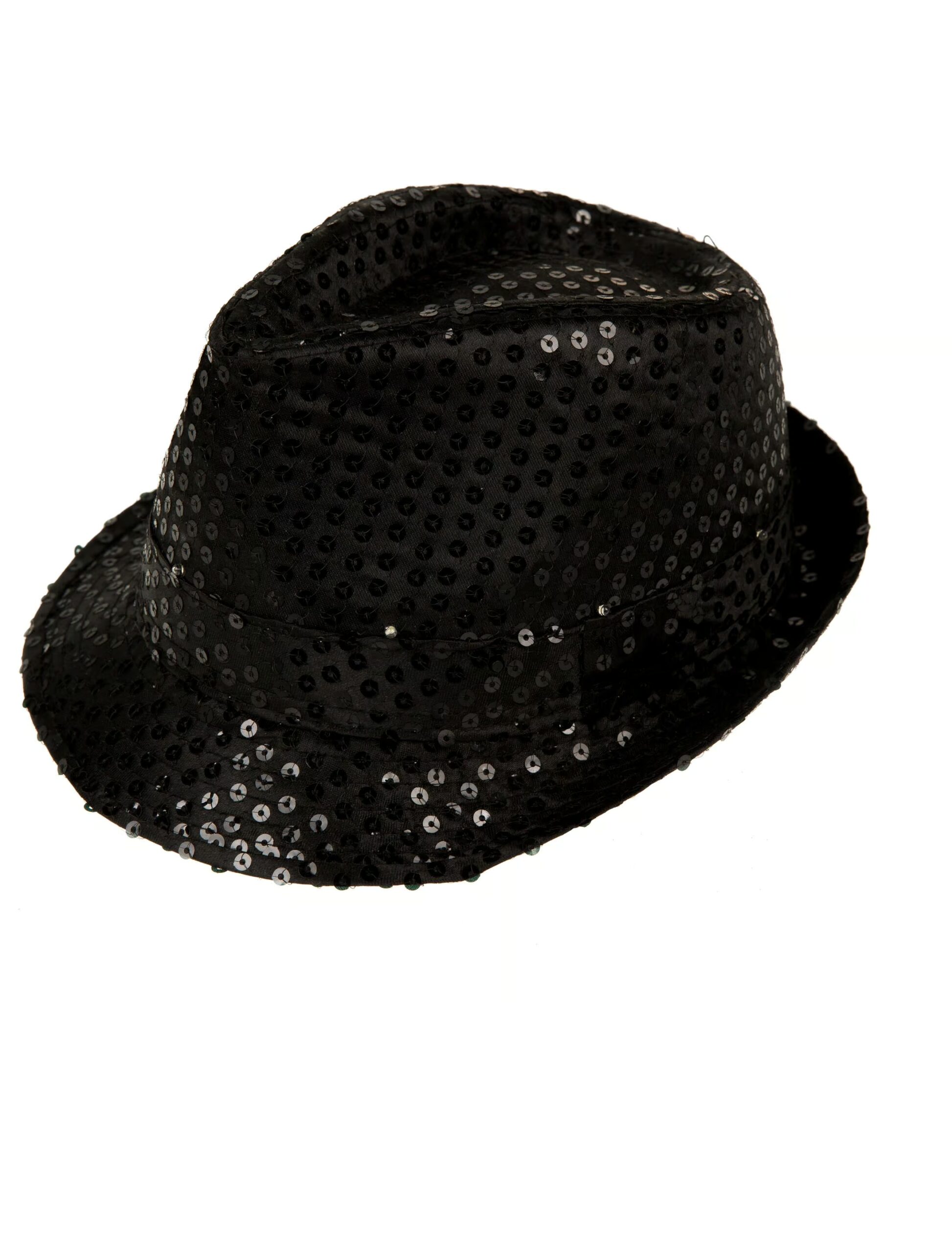 Mit Pailletten besetzter Hut. Im Hutband befinden sich LED’s, die sich bequem per Knopfdruck an- und ausschalten lassen. Ein Hut für maximale Aufmerksamkeit und das perfekte Accessoire für Dein Disco-Outfit auf der nächsten Karnevals- oder Mottoparty.