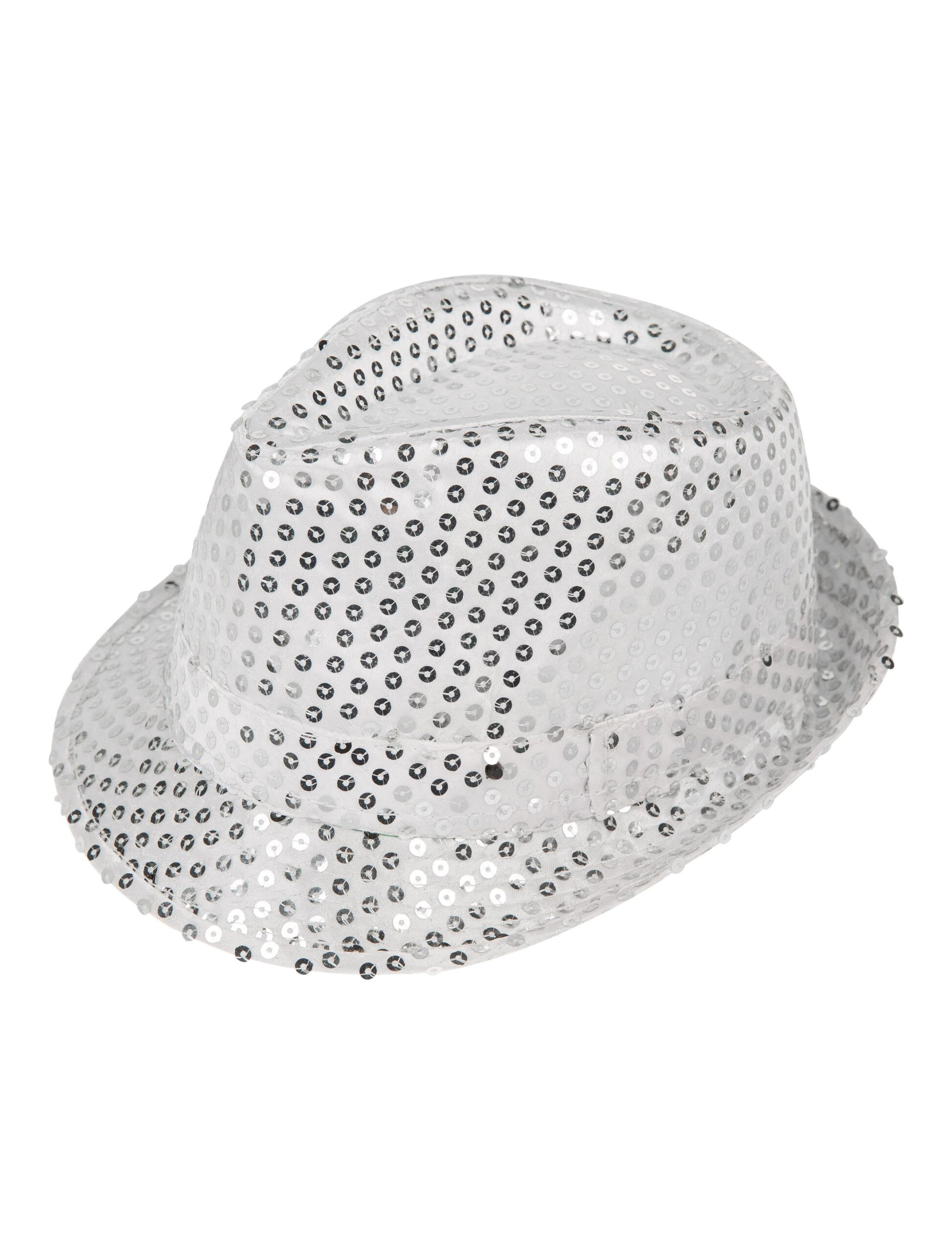 Mit Pailletten besetzter Hut. Im Hutband befinden sich LED’s, die sich bequem per Knopfdruck an- und ausschalten lassen. Ein Hut für maximale Aufmerksamkeit und das perfekte Accessoire für Dein Disco-Outfit auf der nächsten Karnevals- oder Mottoparty.